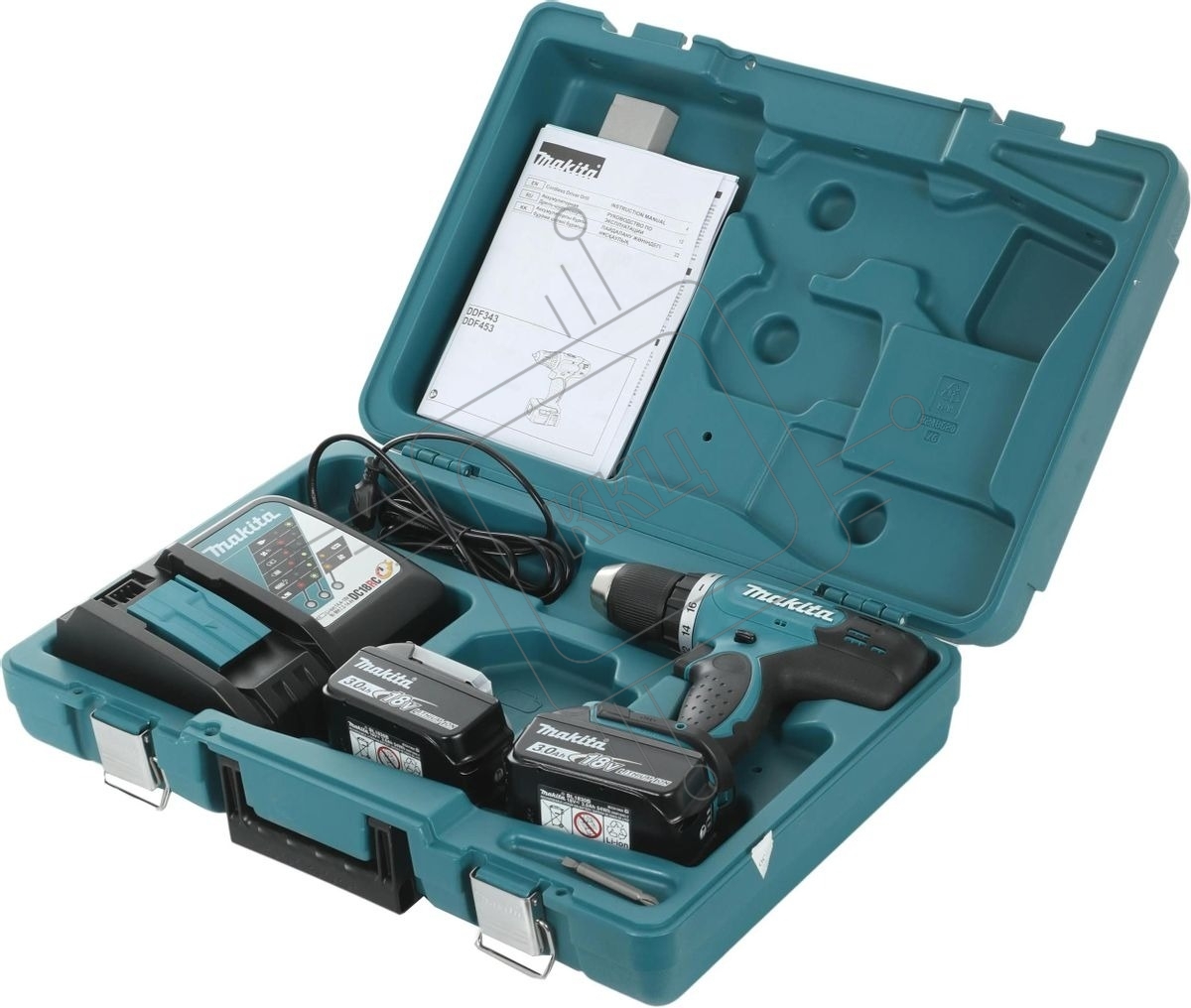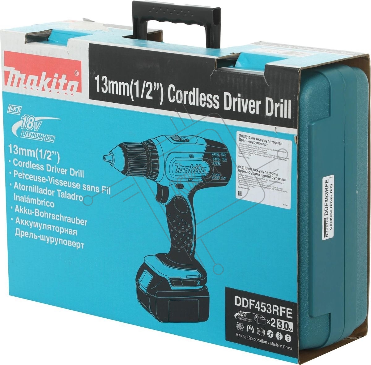Дрель-шуруповерт аккумуляторная Makita DDF453RFE, Аккумуляторная, 18В, 2 АКБ, Кейс