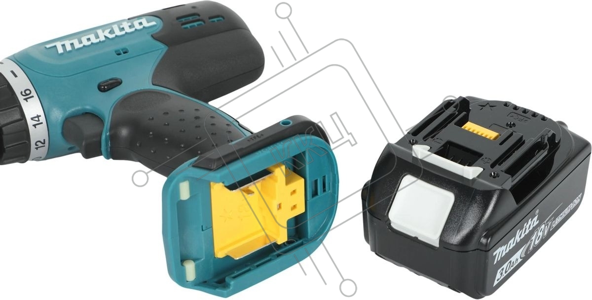 Дрель-шуруповерт Makita DDF453SYE ак 18В,2х1.5А·ч Li-ion,БЗП-13мм,0-400\1300об\м,42\27Нм,1.8кг,чем