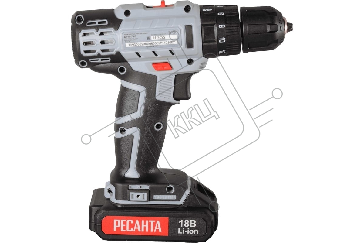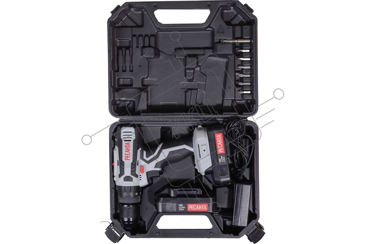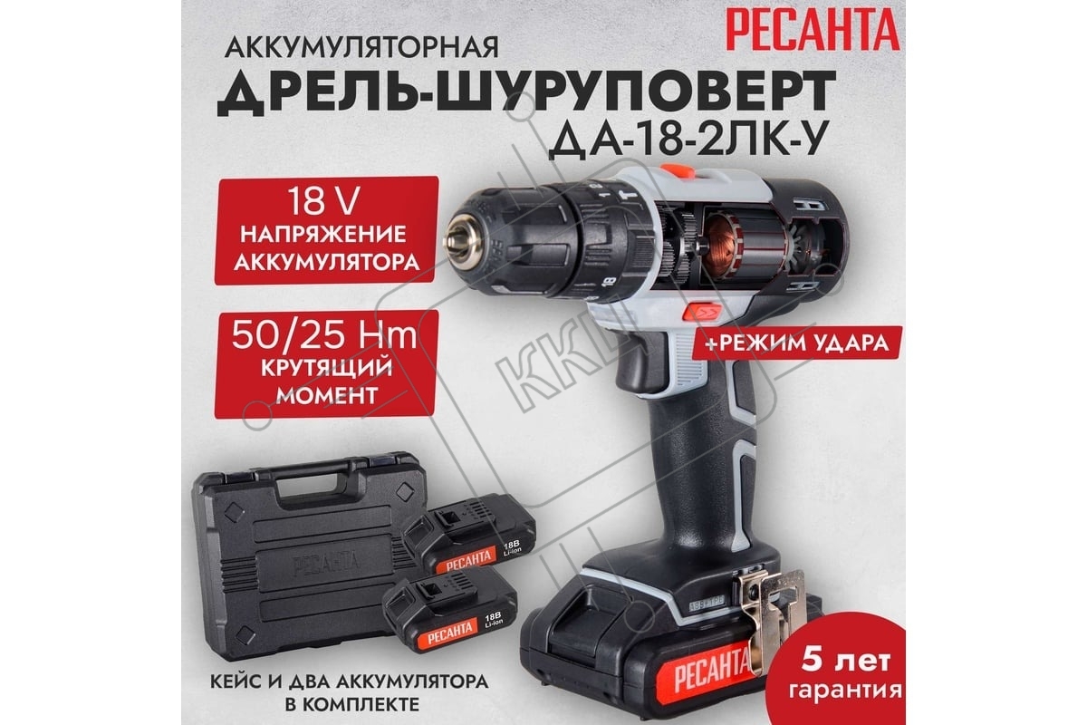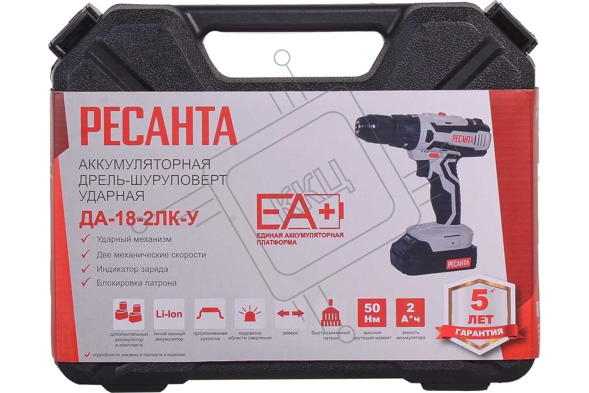 Дрель-шуруповерт аккумуляторная Ресанта ДА-18-2ЛК-У 75/14/6, Аккумуляторная, 18В, 2 АКБ, Ударная, Кейс