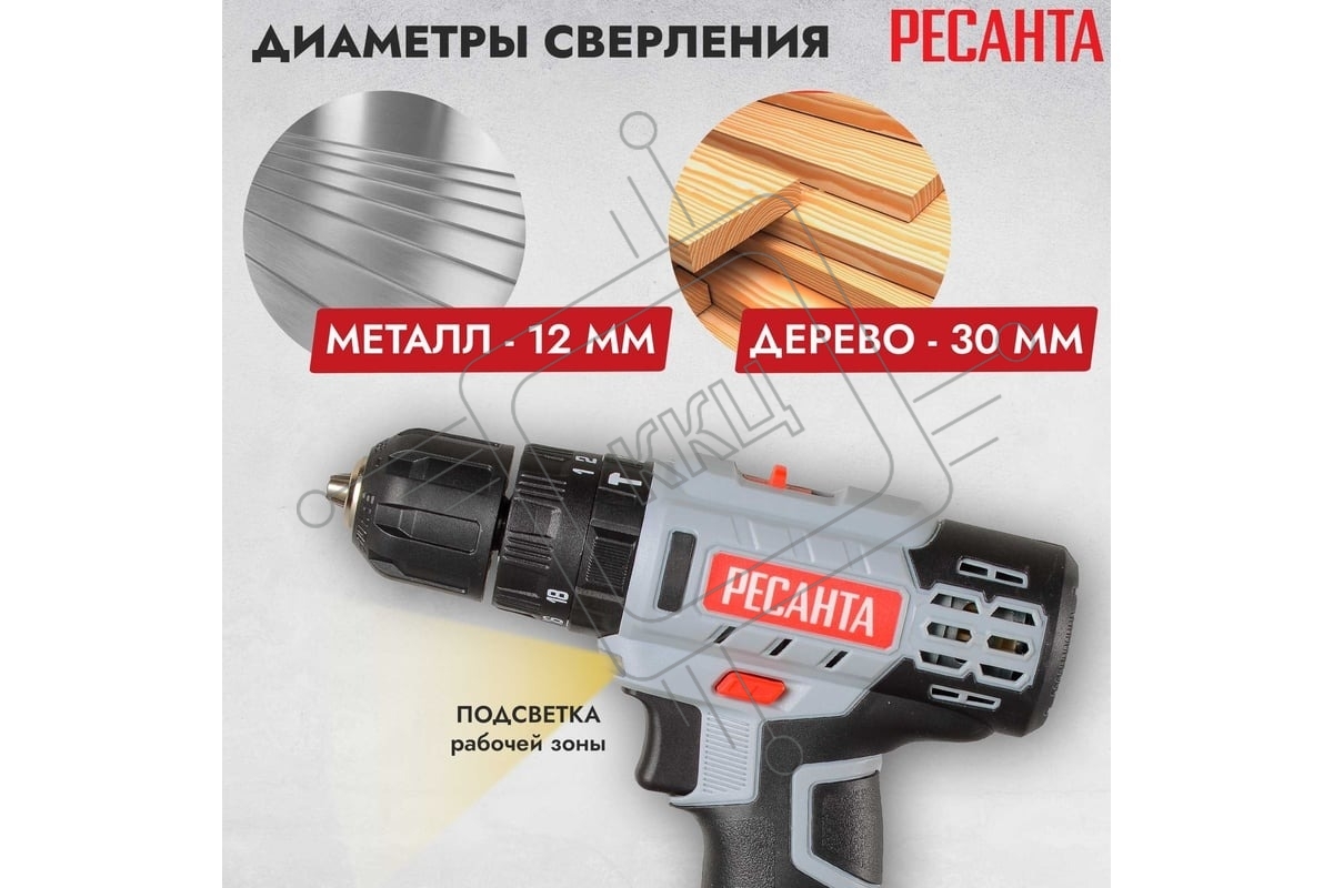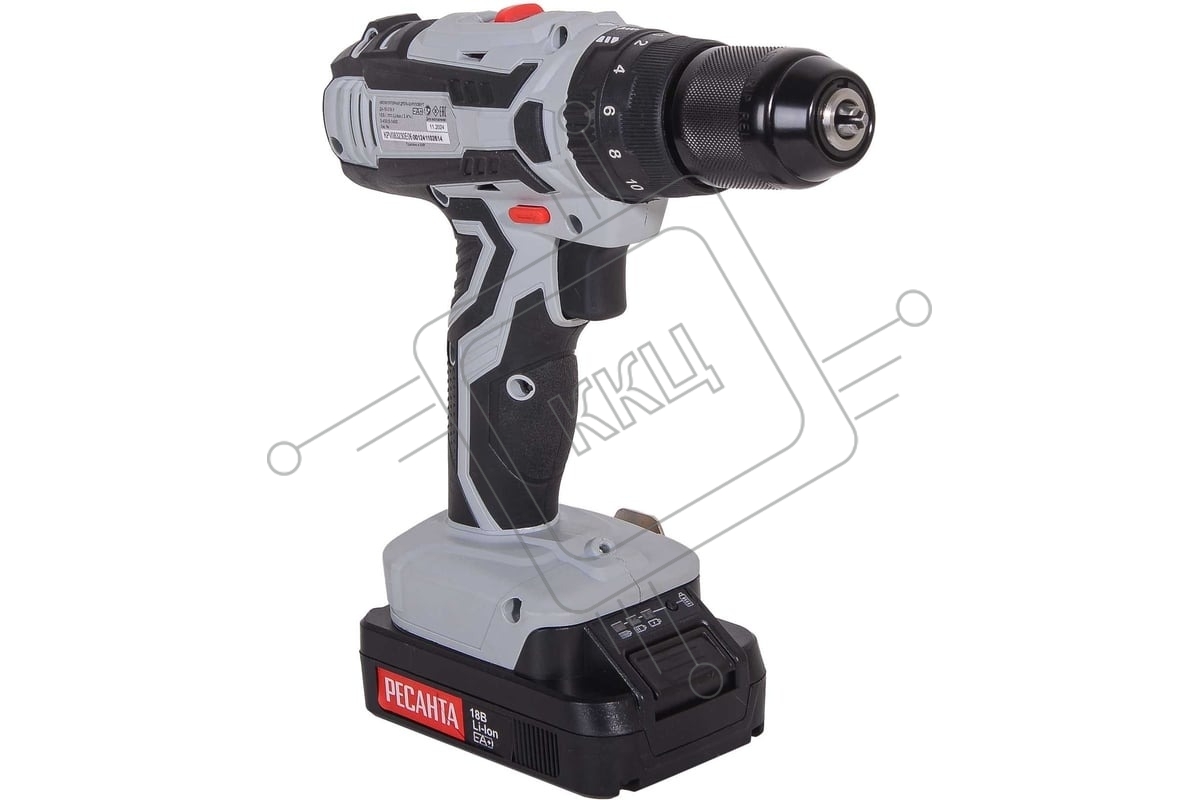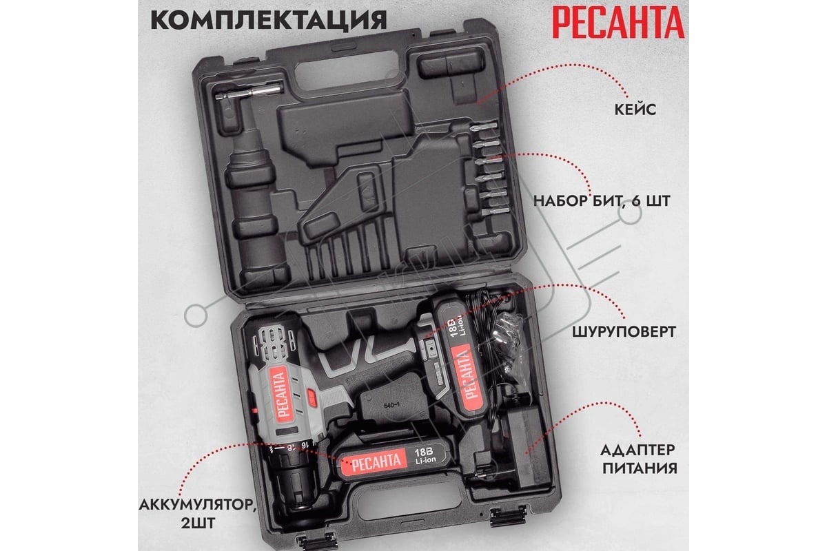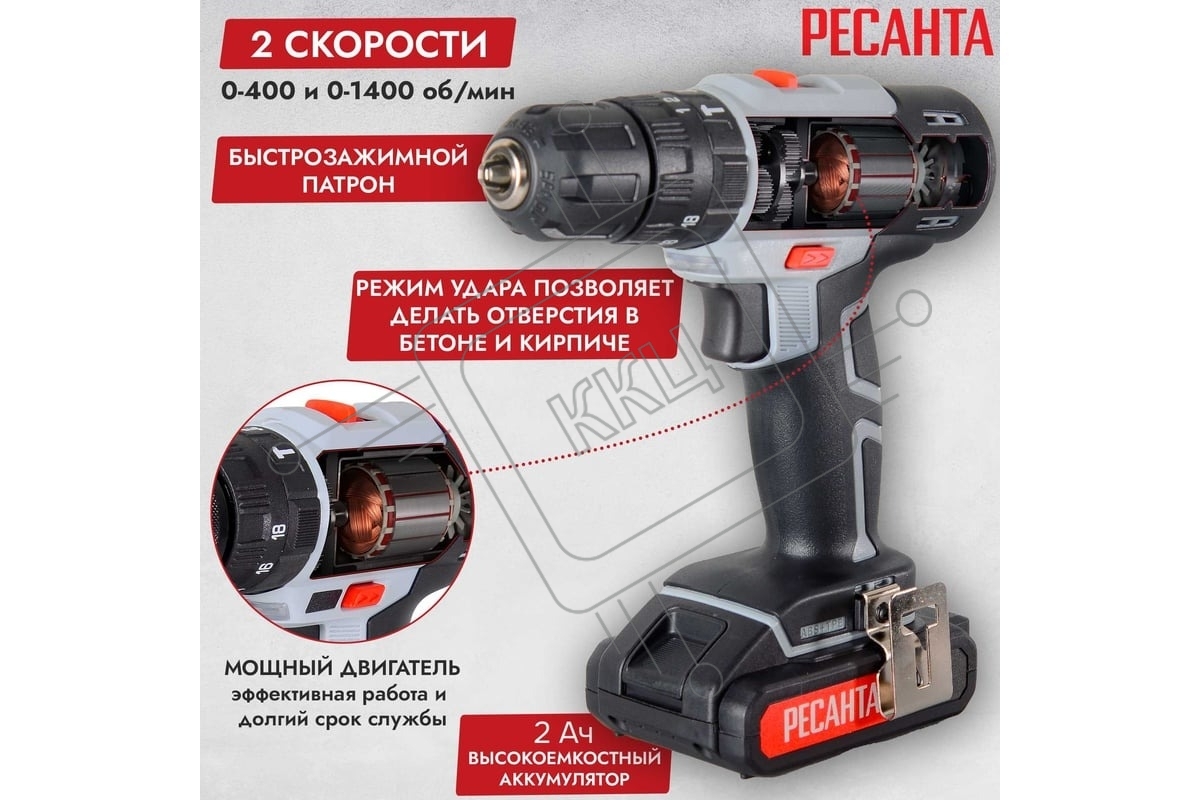 Дрель-шуруповерт аккумуляторная Ресанта ДА-18-2ЛК-У 75/14/6, Аккумуляторная, 18В, 2 АКБ, Ударная, Кейс