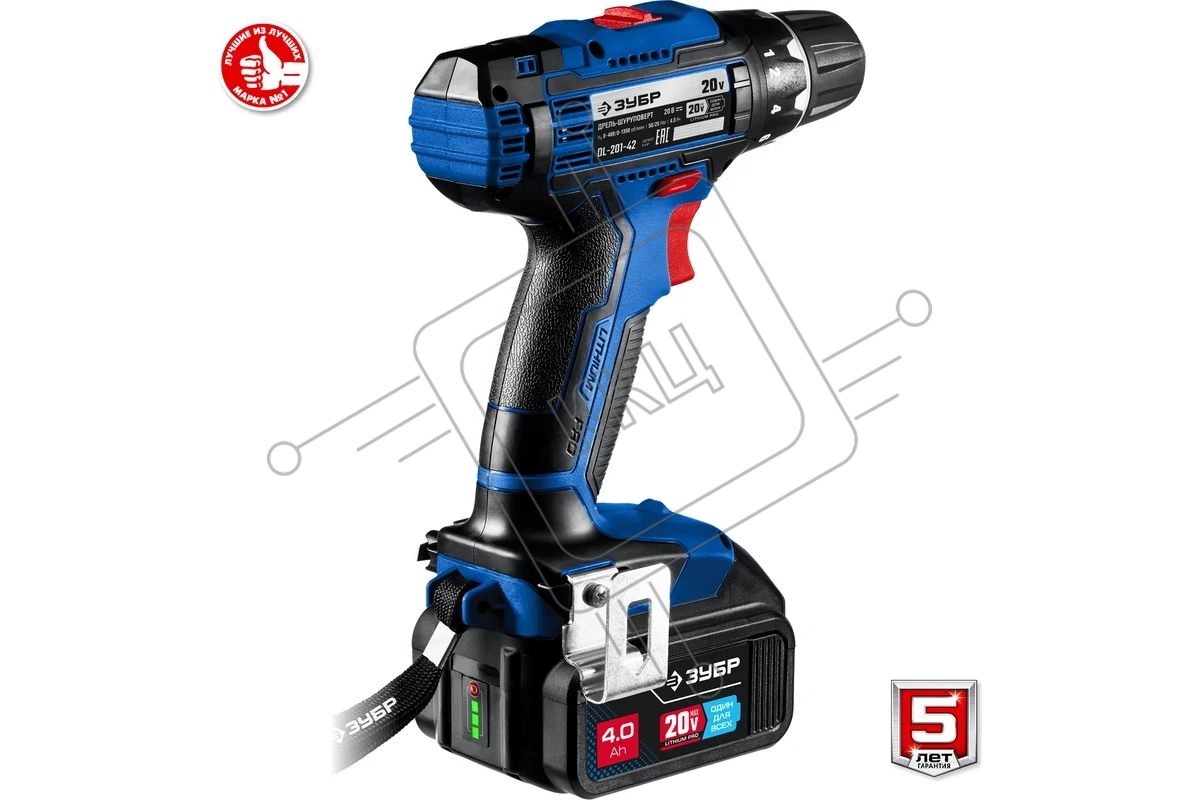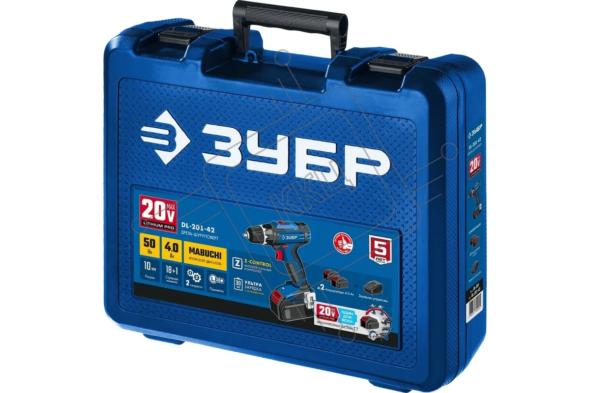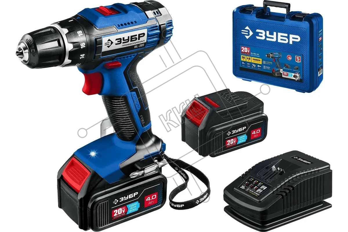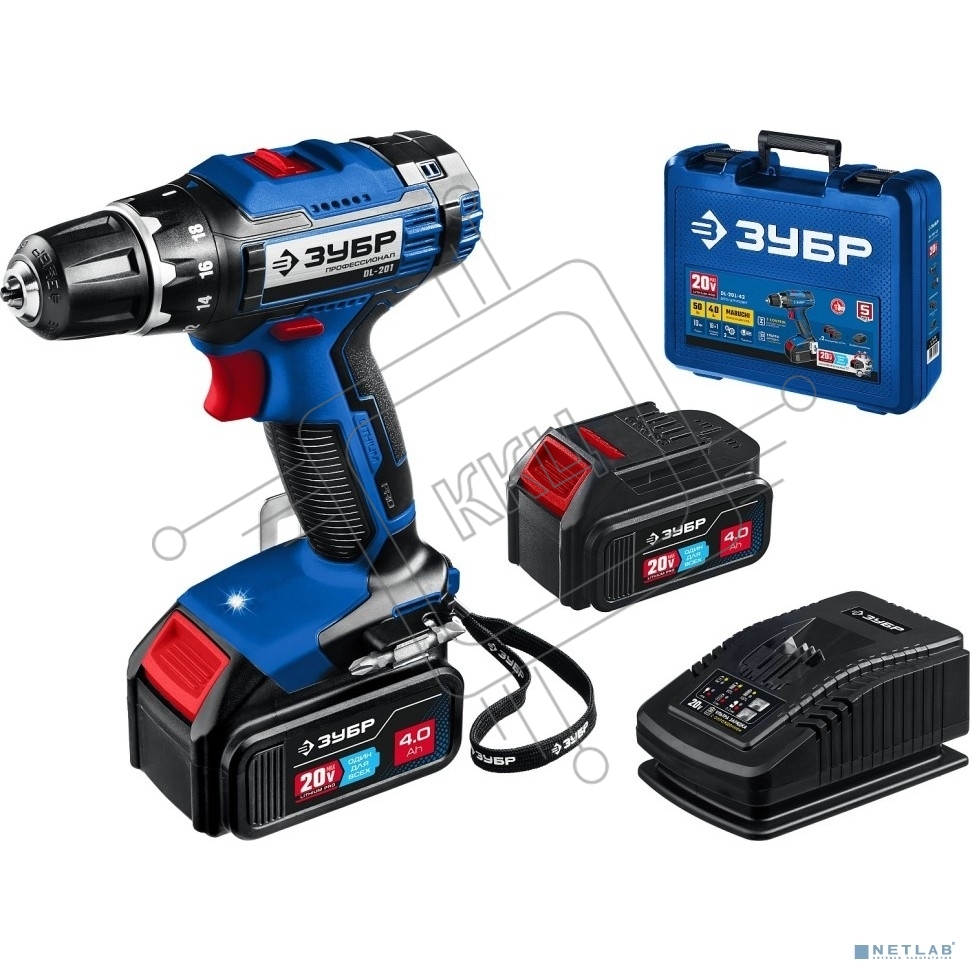 Дрель-шуруповерт аккумуляторная ЗУБР DL-201-42, Аккумуляторная, 20В, 2 АКБ, Кейс