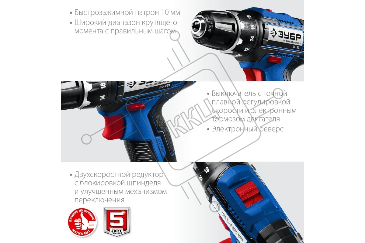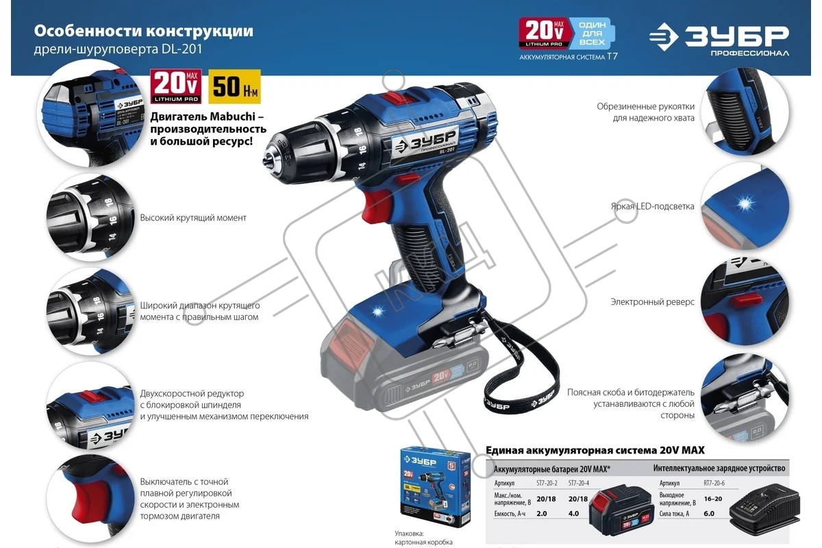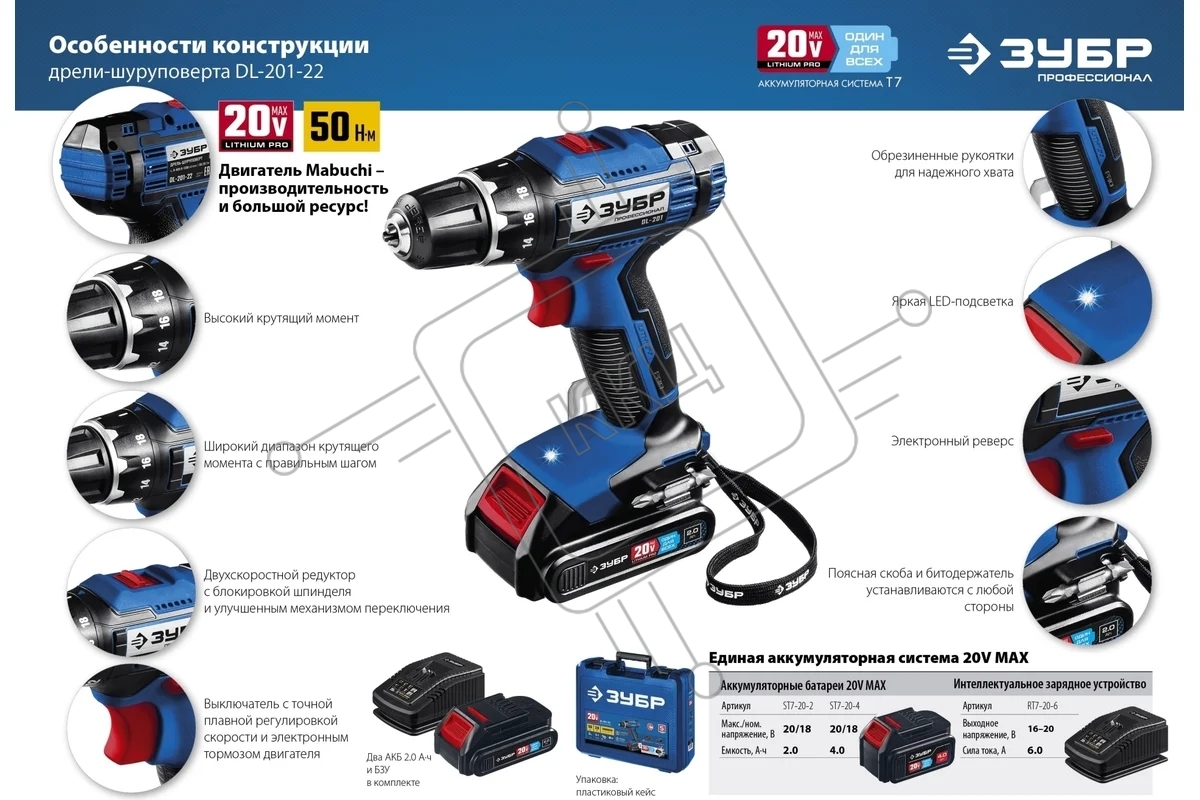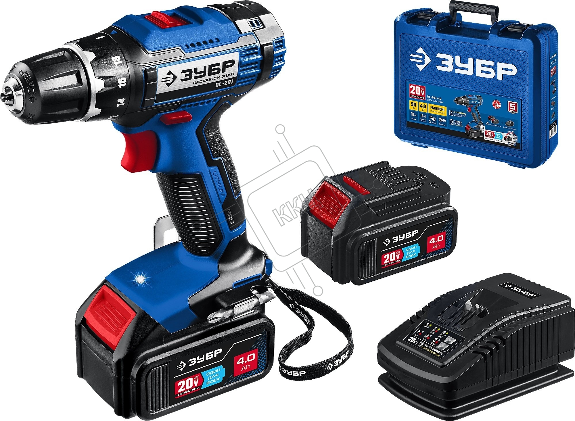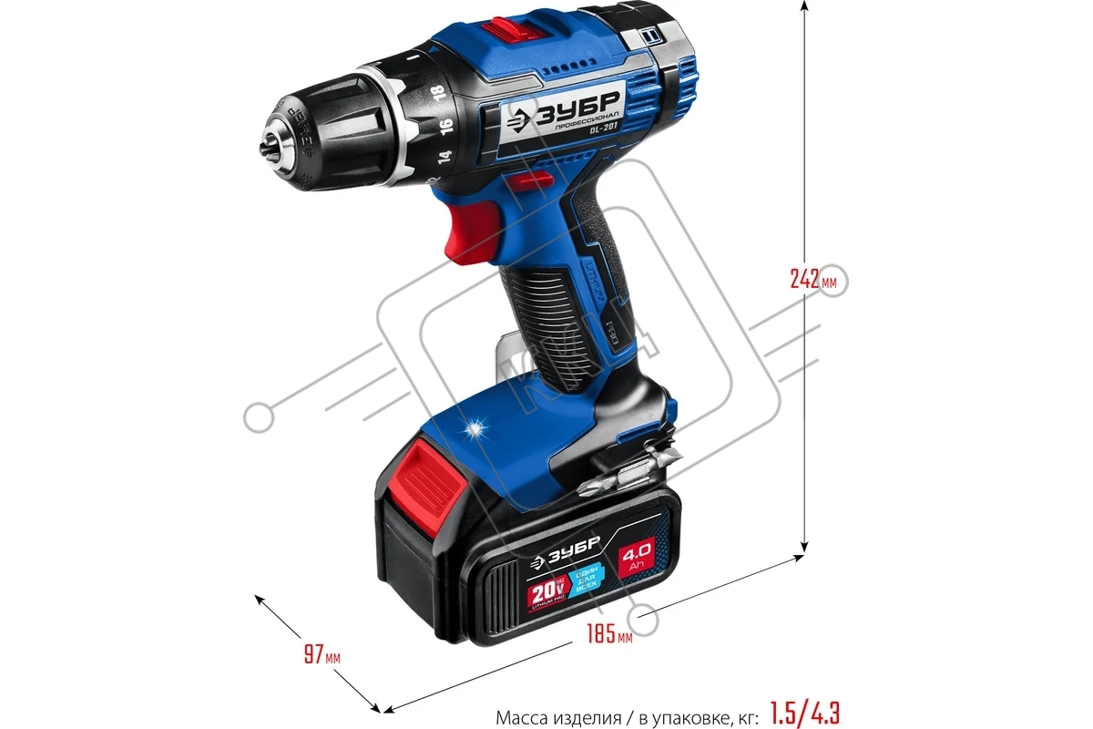 Дрель-шуруповерт аккумуляторная ЗУБР DL-201-42, Аккумуляторная, 20В, 2 АКБ, Кейс