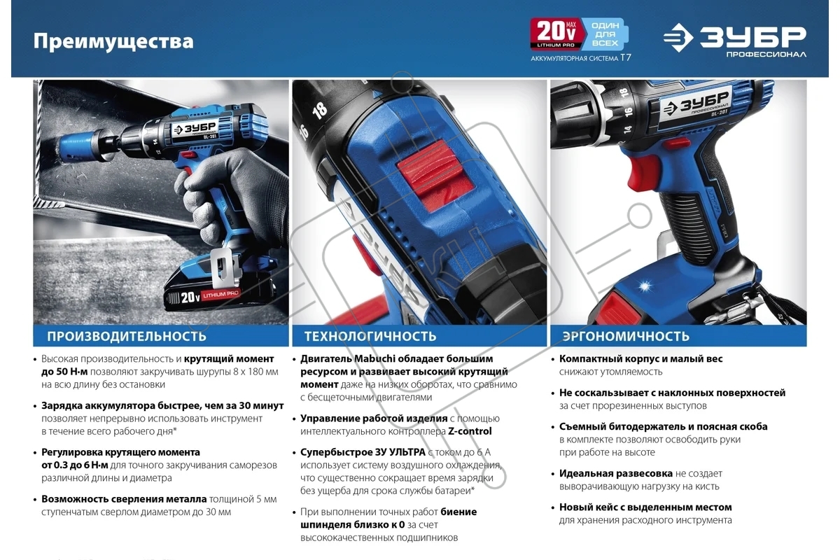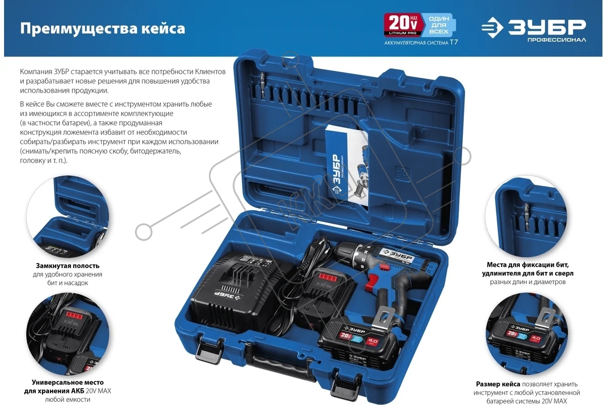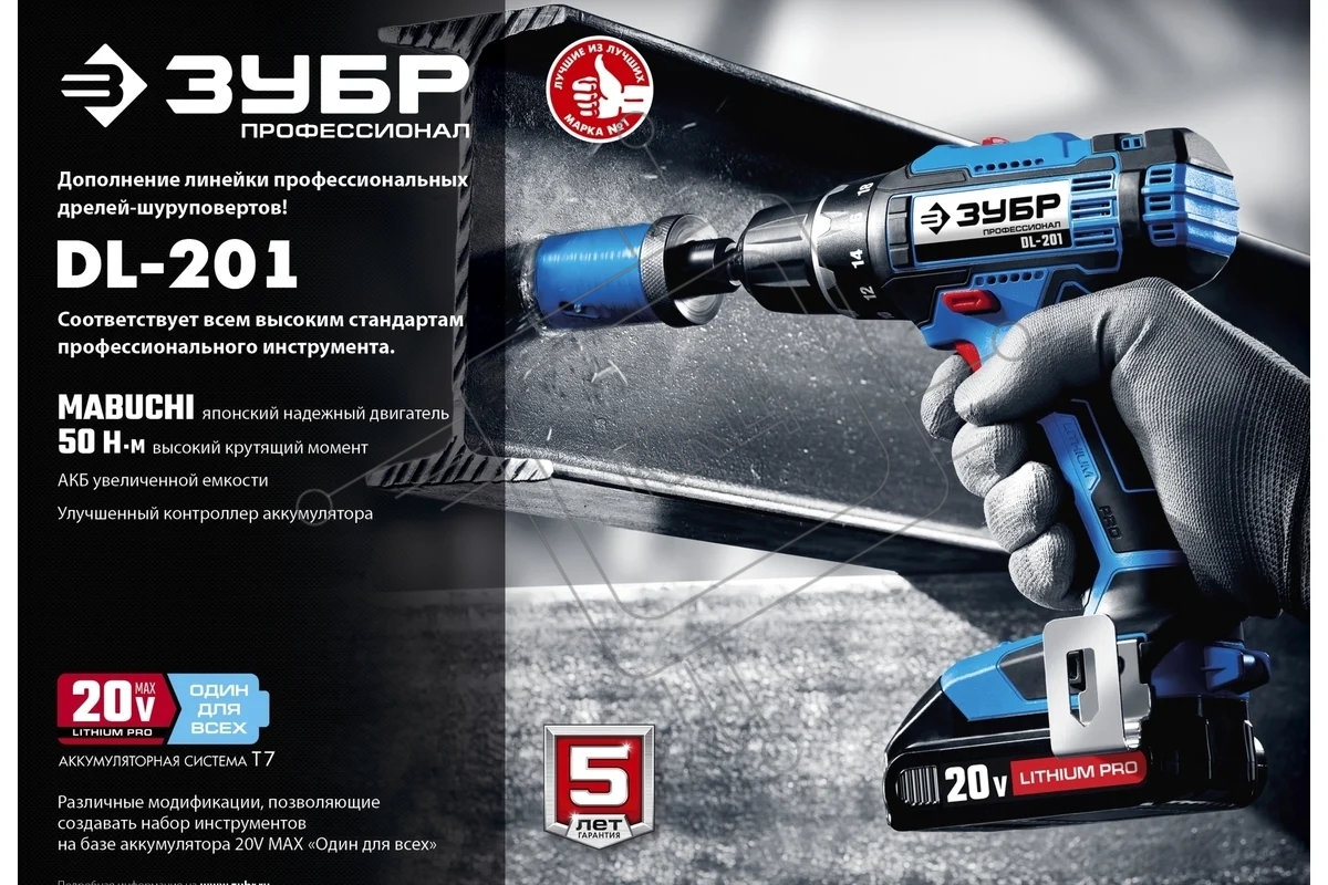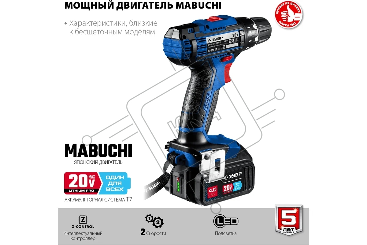 Дрель-шуруповерт аккумуляторная ЗУБР DL-201-42, Аккумуляторная, 20В, 2 АКБ, Кейс