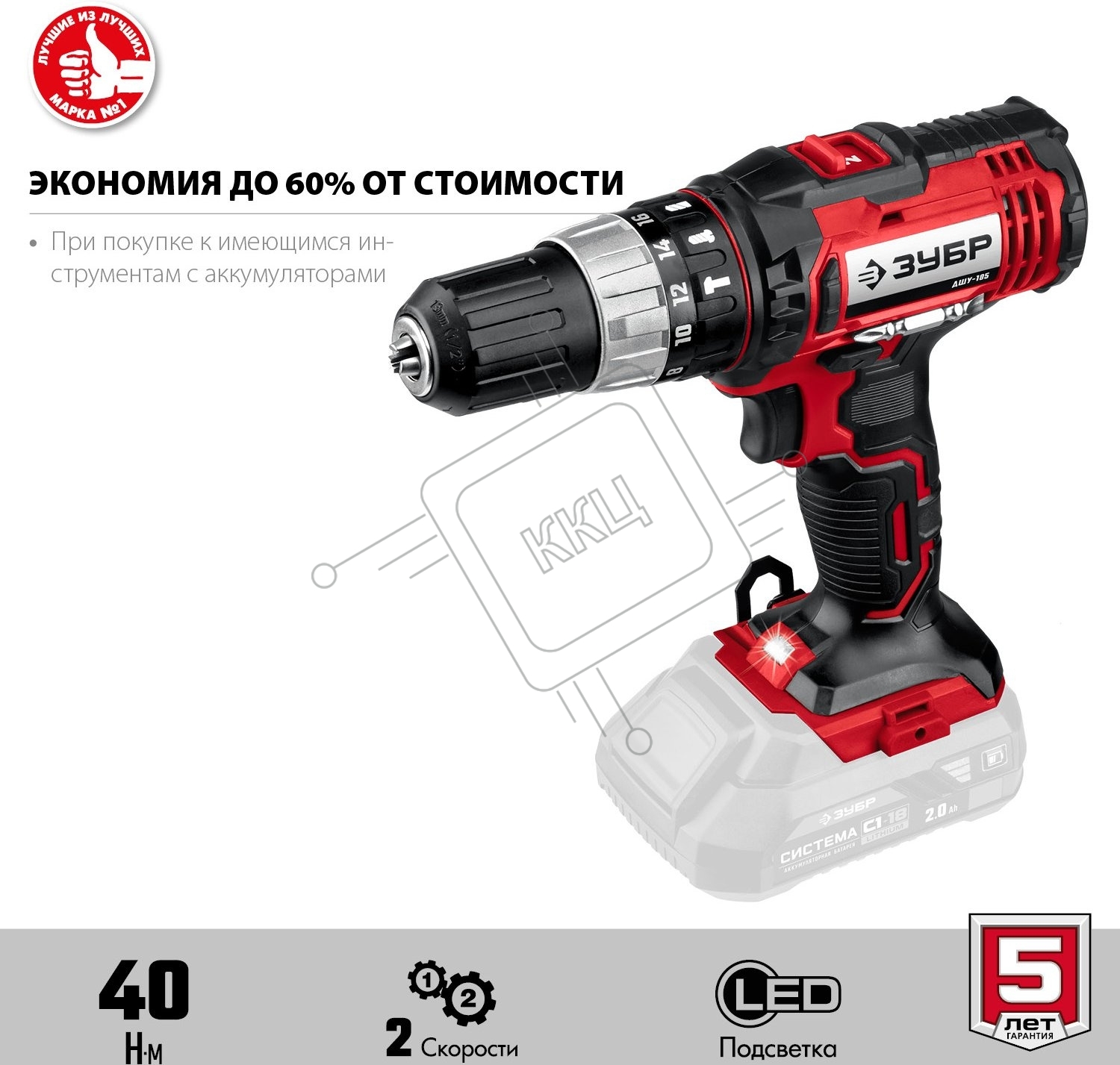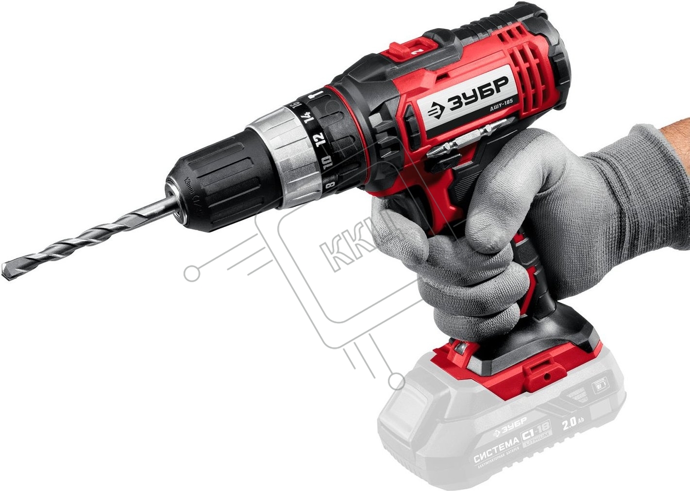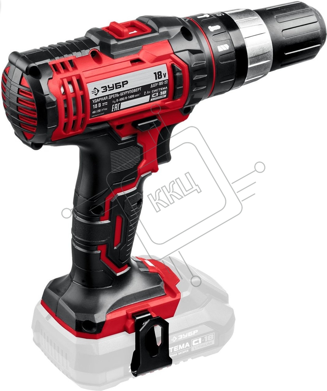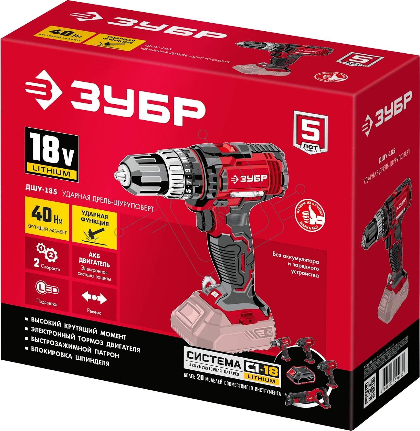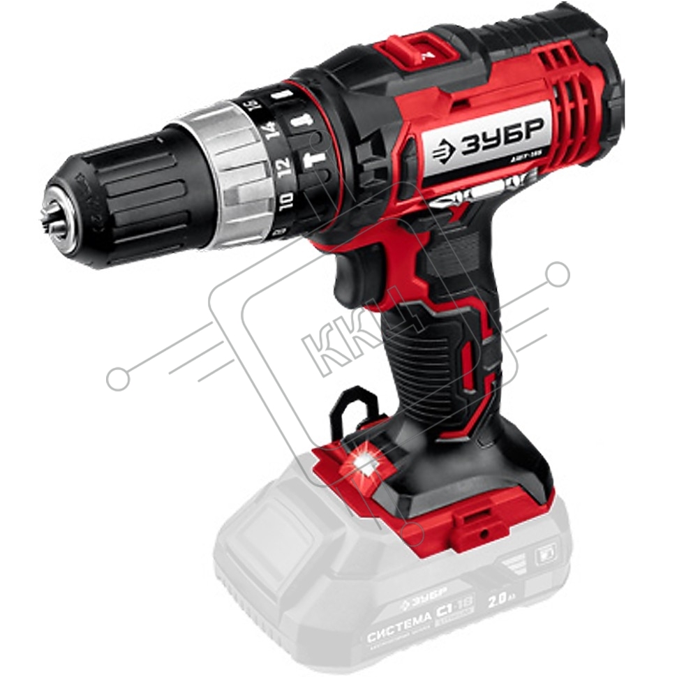 Дрель-шуруповерт аккумуляторная ЗУБР ДШУ-185, Аккумуляторный, 18В, Без АКБ и ЗУ, Ударный
