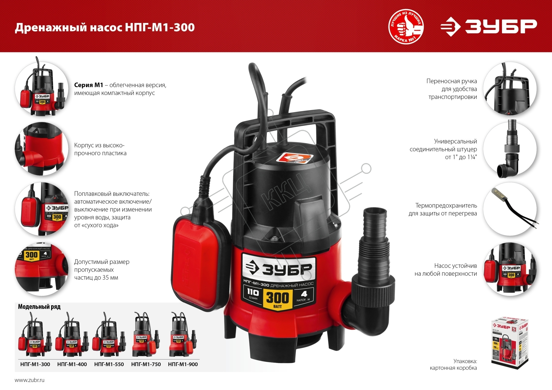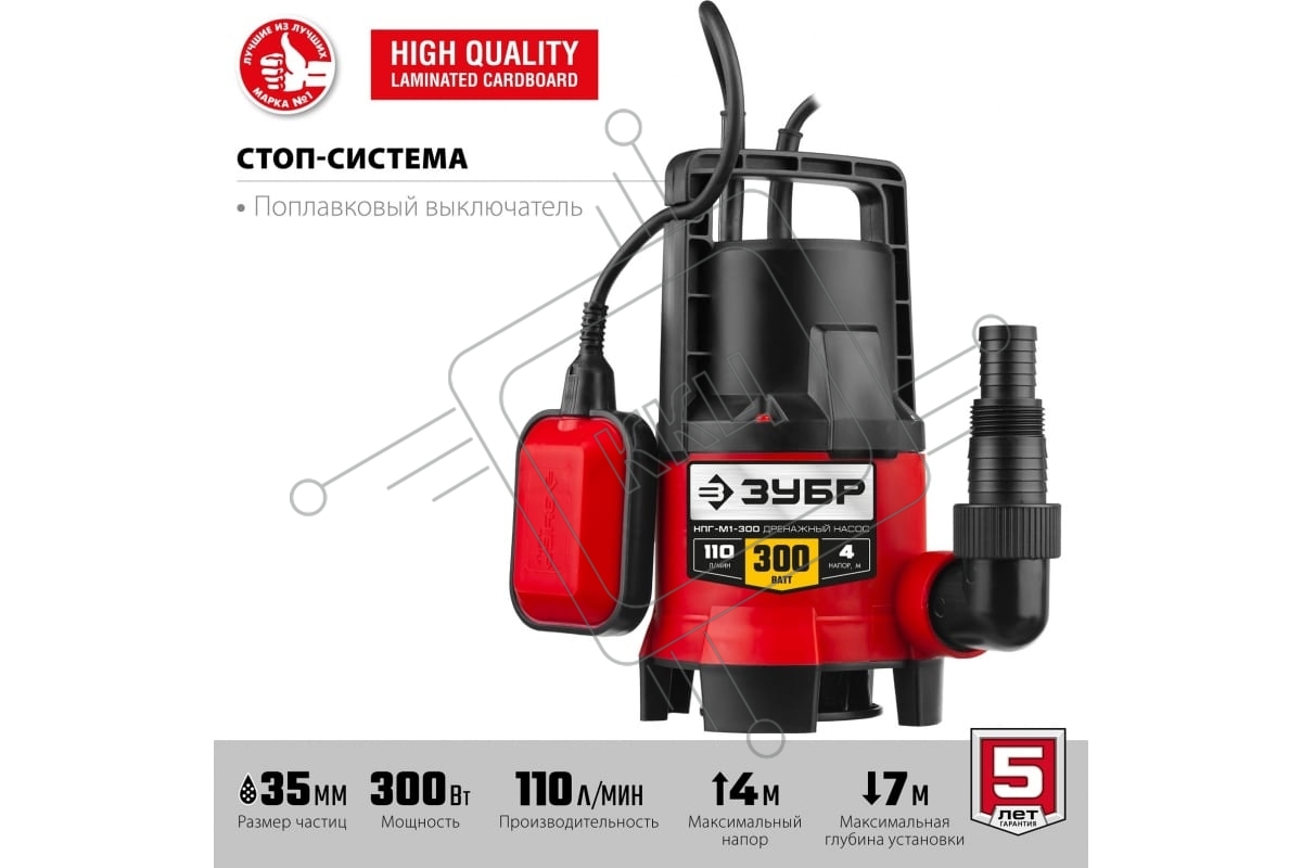 Дренажный насос ЗУБР для грязной воды, 300 Вт НПГ-М1-300