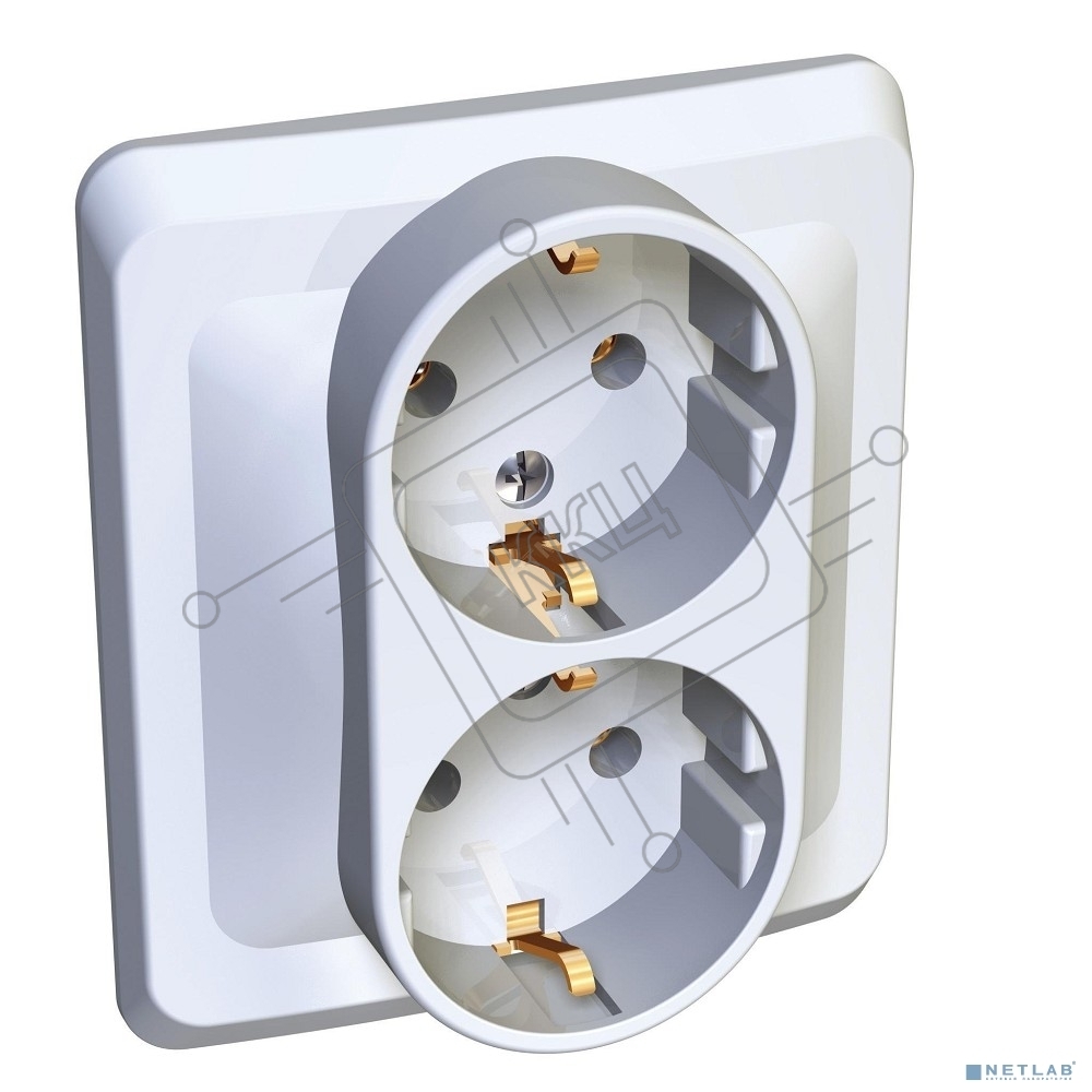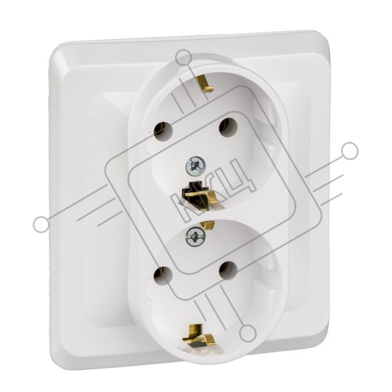 Двойная С/У РОЗЕТКА Systeme electric PC16-007B ЭТЮД с заземлением без шторок 16А 250B, БЕЛЫЙ, Россия