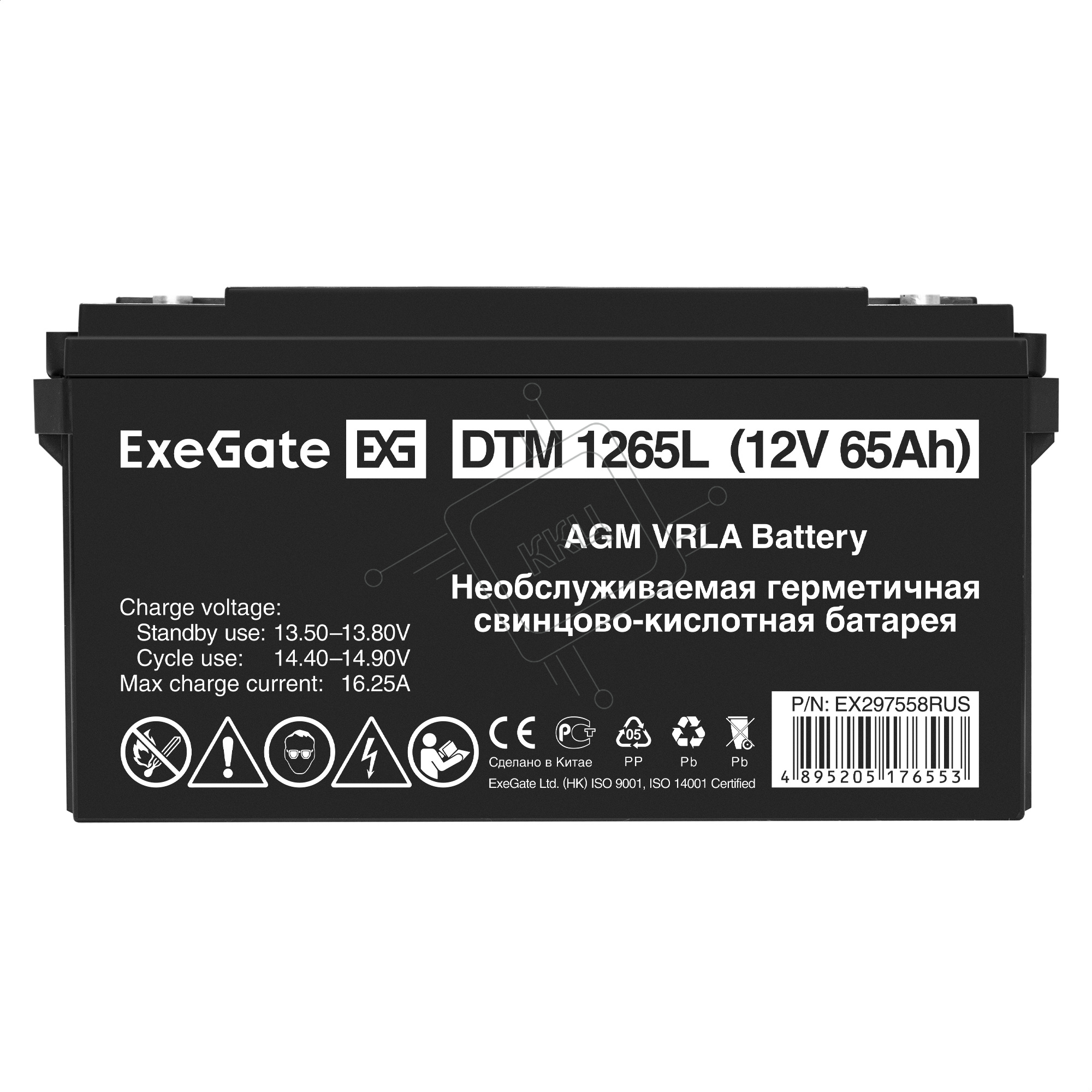 Аккумуляторная батарея ExeGate DTM 1265L (12V 65Ah, болт М6)