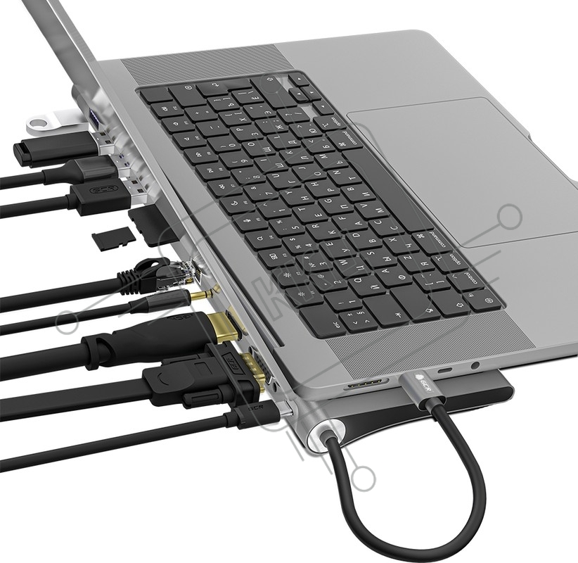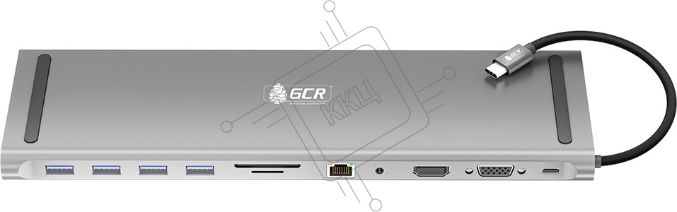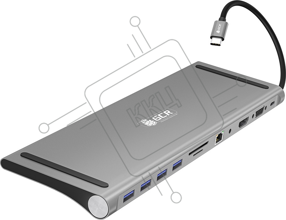 Док-станция GCR 11 в 1 Multiport Aluminum Type C 3.1 на USB 3.0 + 3 x USB 2.0 + Type C PD + HDMI 2.0 + VGA + SD/MicroSD + audio 3.5мм jack, GCR-54220