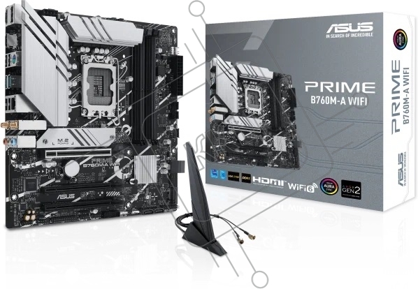 Материнская плата ASUS PRIME B760M-A WIFI, LGA 1700, Intel B760, 4xDDR5, 4xSATA, 2xM.2, 1xPCIe 4.0 x16, 1xPCIe 4.0 x4, 1xPCIe 4.0 x1, 2xHDMI, 1xDP, 1x 2.5Gb LAN, 2xUSB-A 3.2 Gen 2, 4xUSB-A 2.0, 3x3.5 мм, 7.1, mATX