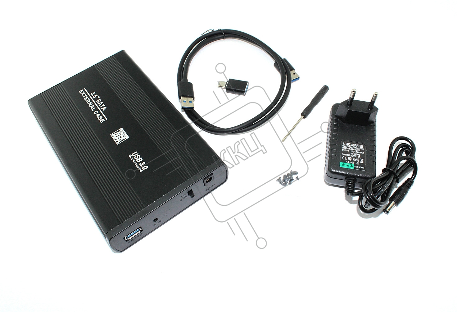 Бокс для жесткого диска 3,5" SATA алюминиевый USB 3.0 черный