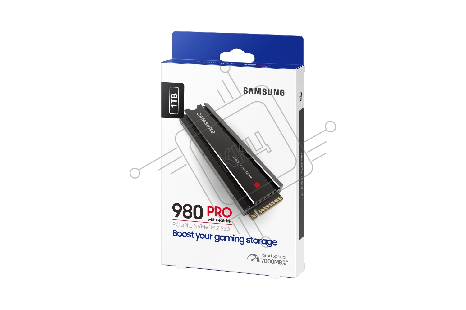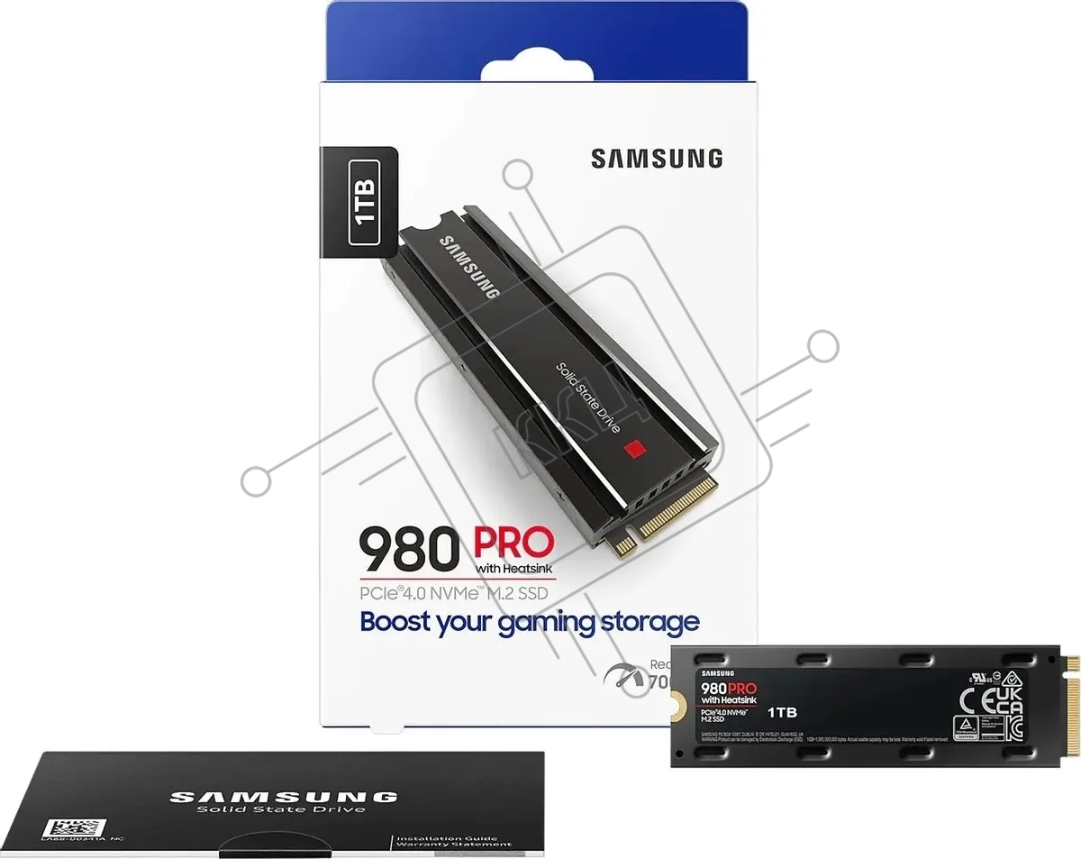 Накопитель SSD Samsung 980 PRO, 1TB, PCIe 4.0 x4, M.2 2280, NVMe, R/W 7000/5000, с радиатором