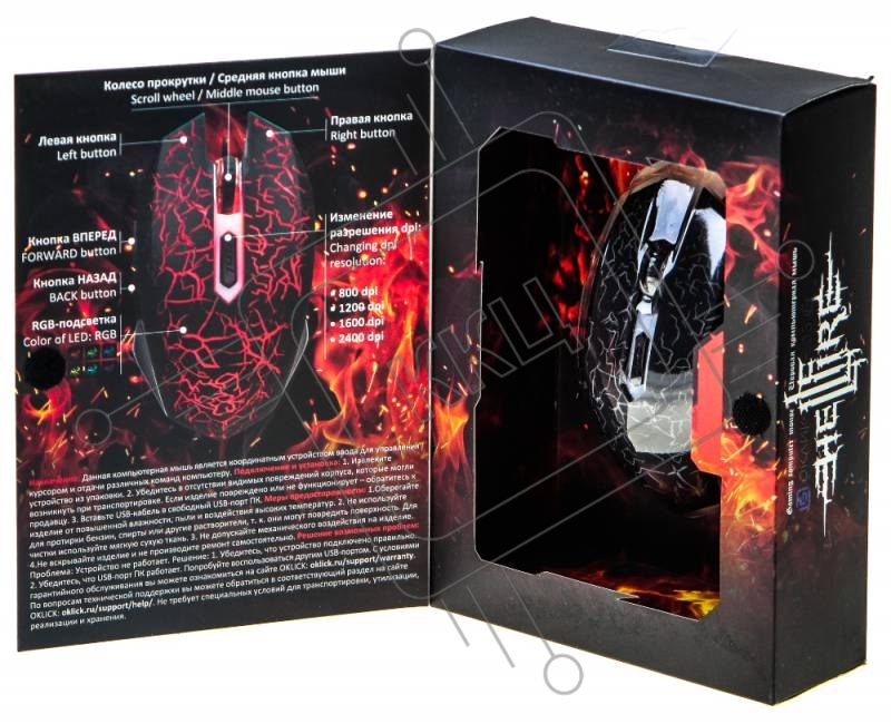 Мышь Oklick 895G HELLFIRE черный оптическая (2400dpi) USB игровая (5but)