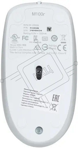 Мышь проводная Logitech M100R белый, 1000 dpi, USB, кнопки - 3