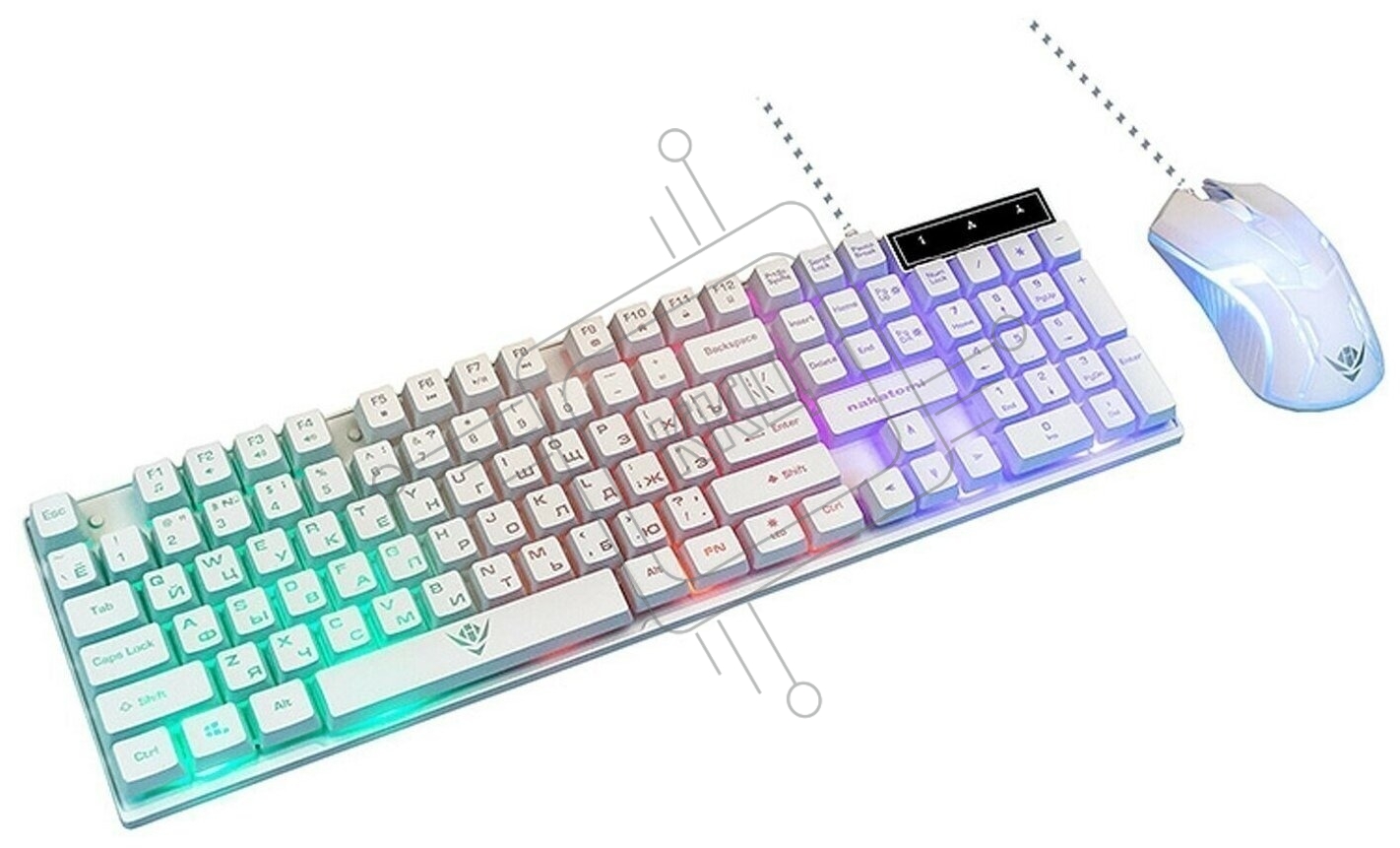 Комплект клавиатура+мышь Nakatomi KMG-2305U проводной, USB, 1600 DPI, белый
