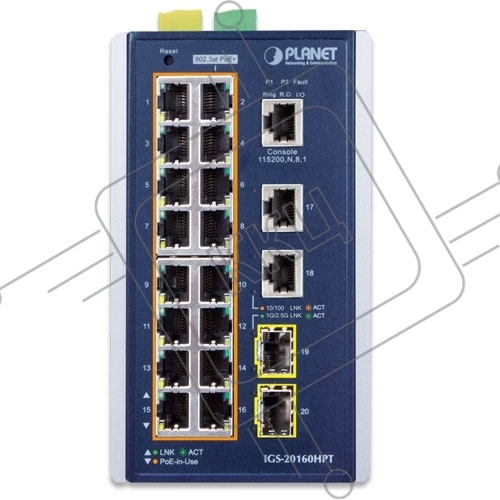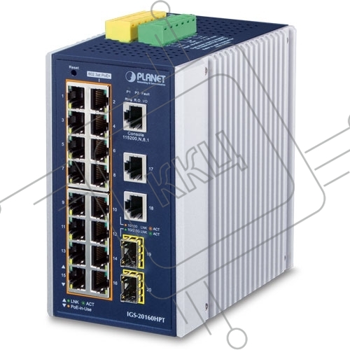 Индустриальный PoE коммутатор IGS-20160HPT для монтажа в DIN-рейку IP30 Industrial L2+/L4 16-Port 1000T 802.3at PoE+ 2-Port 1000T + 2-port 100/1000X SFP Full Managed Switch (-40 to 75 C, dual redundant power input on 48~56VDC terminal block, DIDO, ERPS Ri
