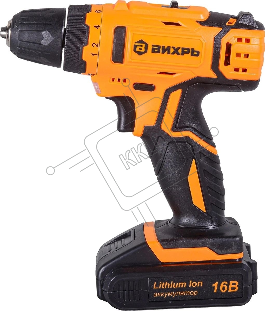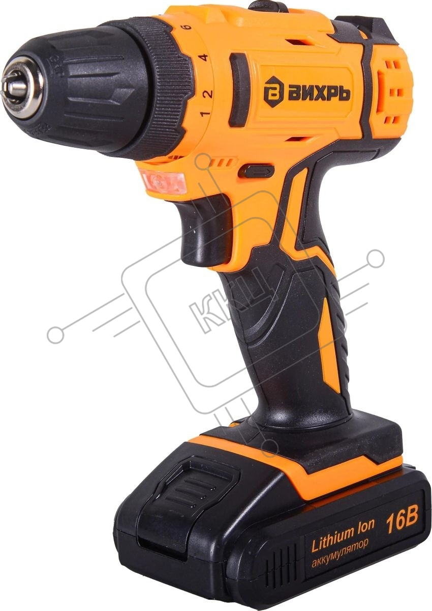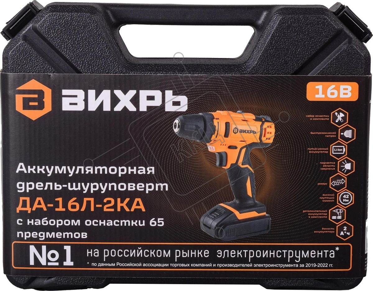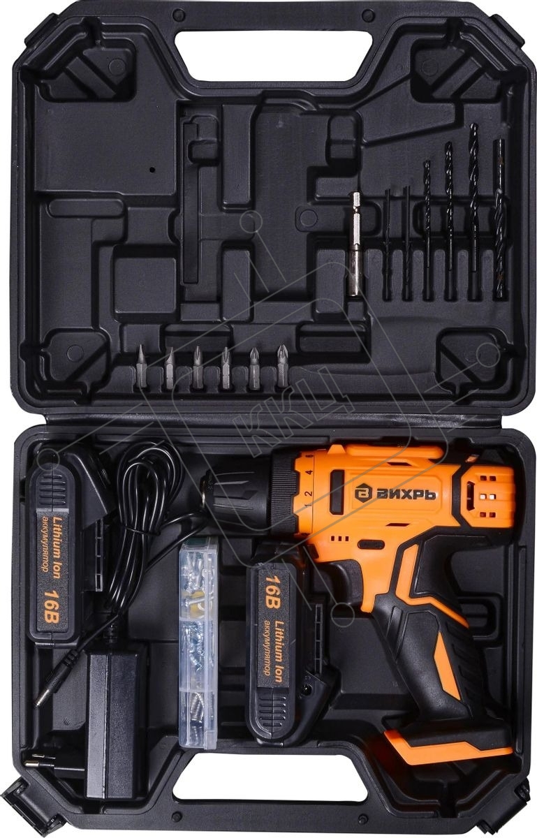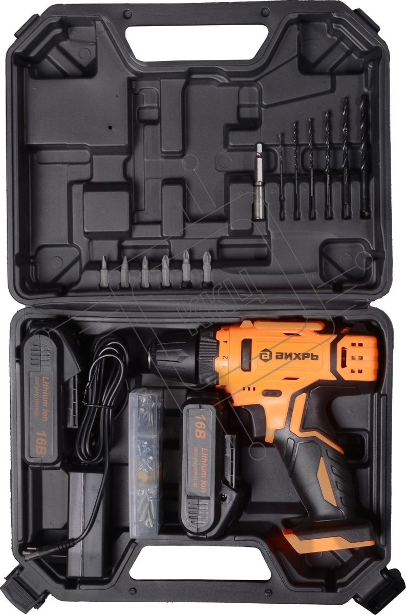 Дрель-шуруповерт аккумуляторная Вихрь ДА-16Л-2КА 72/14/49, Аккумуляторная, 16В, 2 АКБ, Кейс