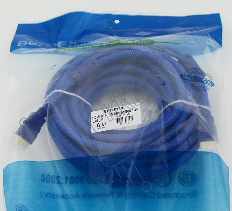 Кабель HDMI Ver.1.4 Blue jack HDMI19 (m)/HDMI19 (m) 10м феррит.кольца Позолоченные контакты