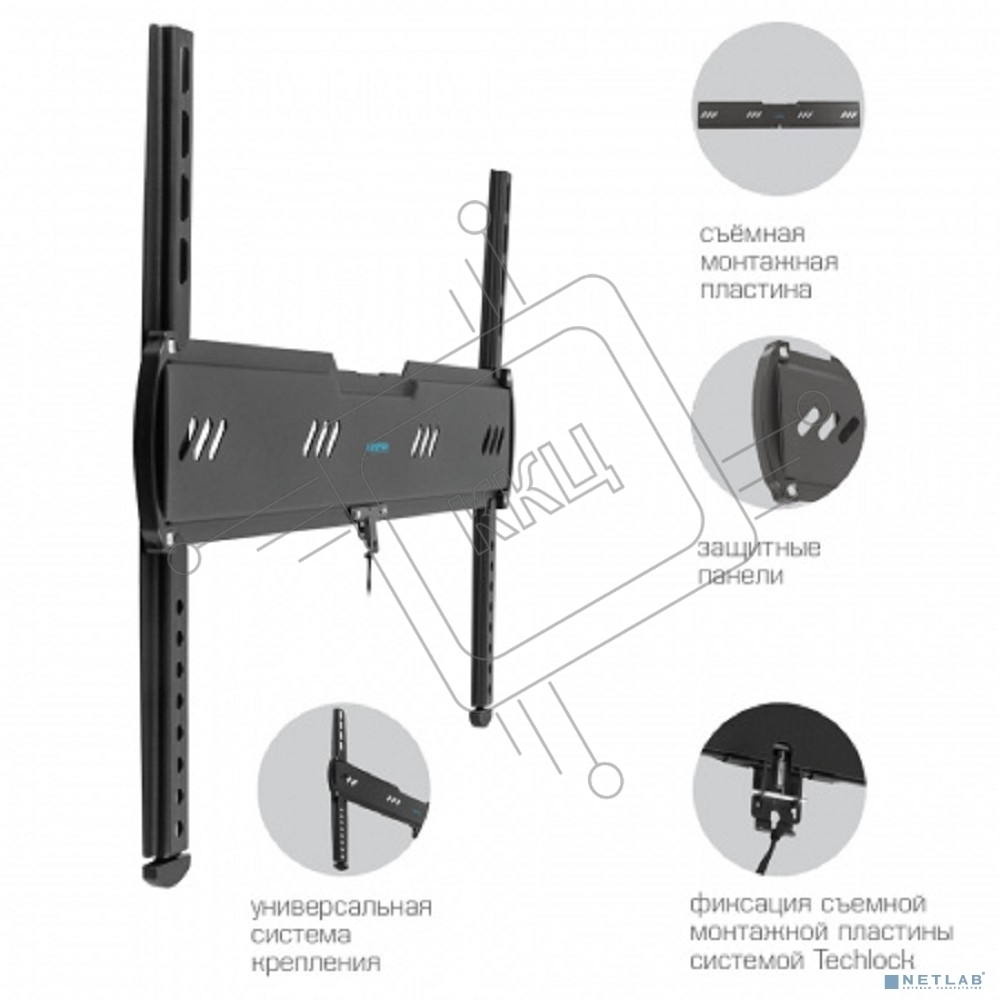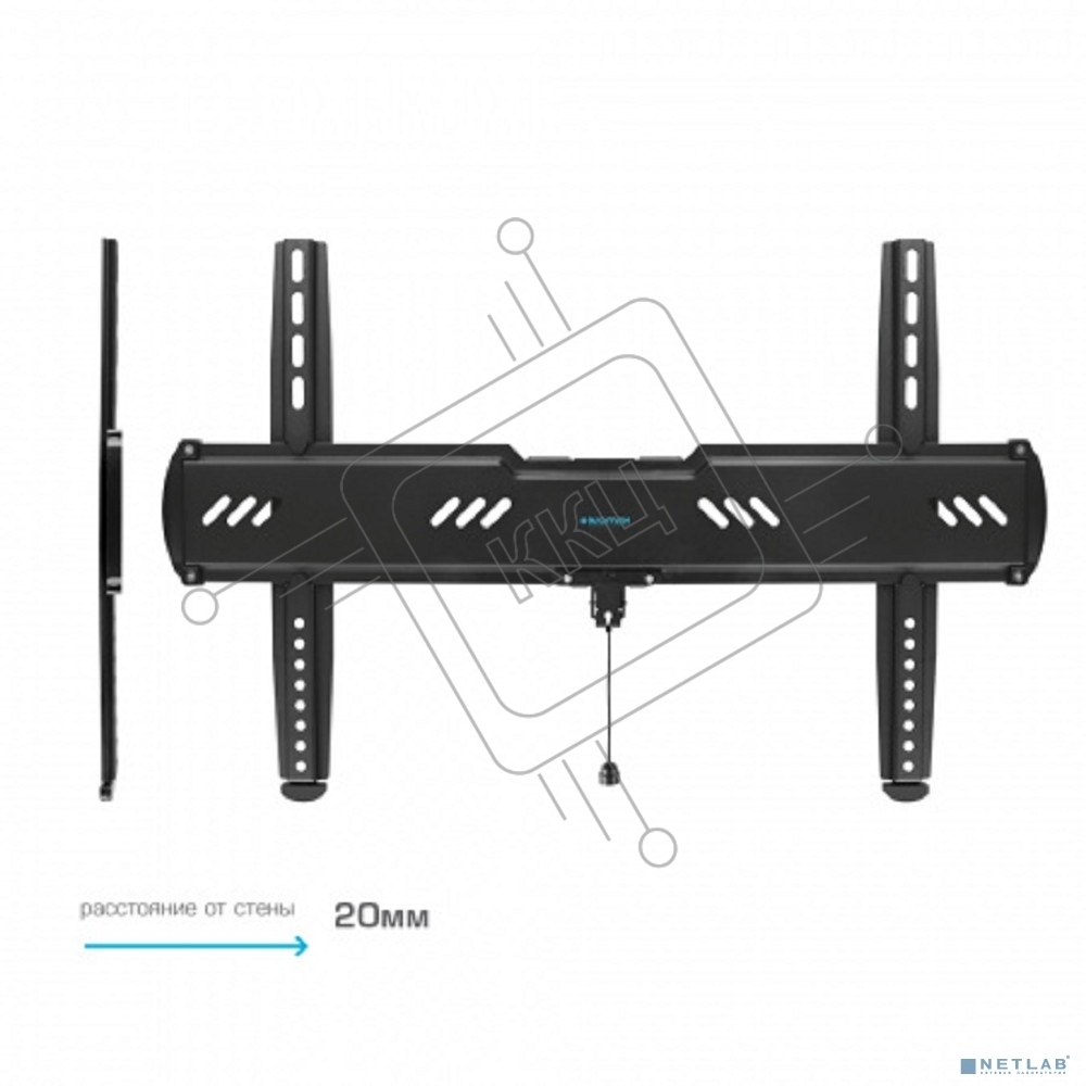 Кронштейн для телевизора Kromax Ultra Slim-100, 32"-90", макс. 55кг, настенный, фиксированный черный