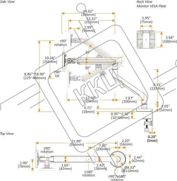 Кронштейн для мониторов Ultramounts UM725W белый 17"-32" макс.9кг крепление к столешнице поворот и наклон
