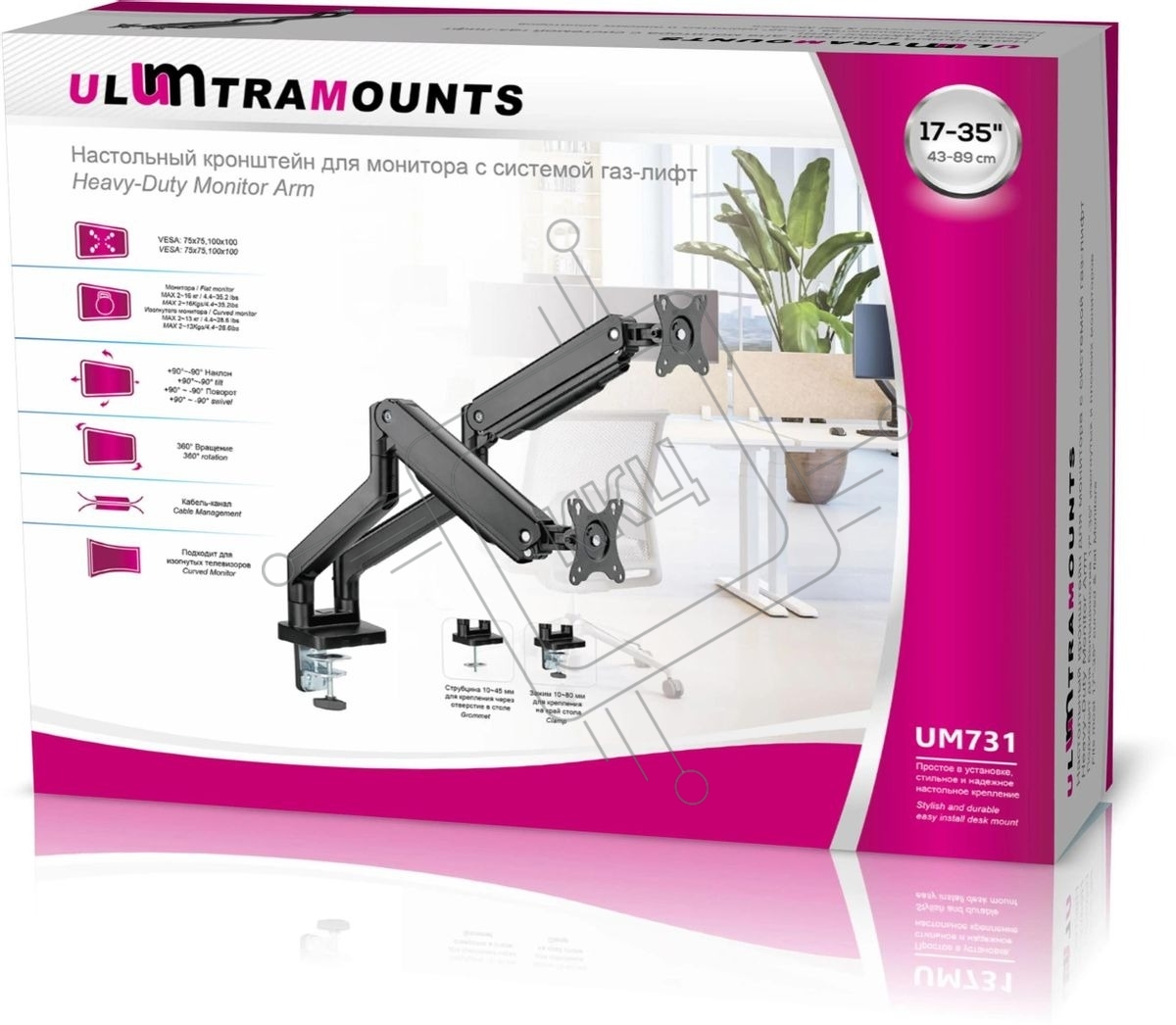 Кронштейн для мониторов Ultramounts UM731 черный 17"-35" макс.16кг крепление к столешнице поворот и наклон