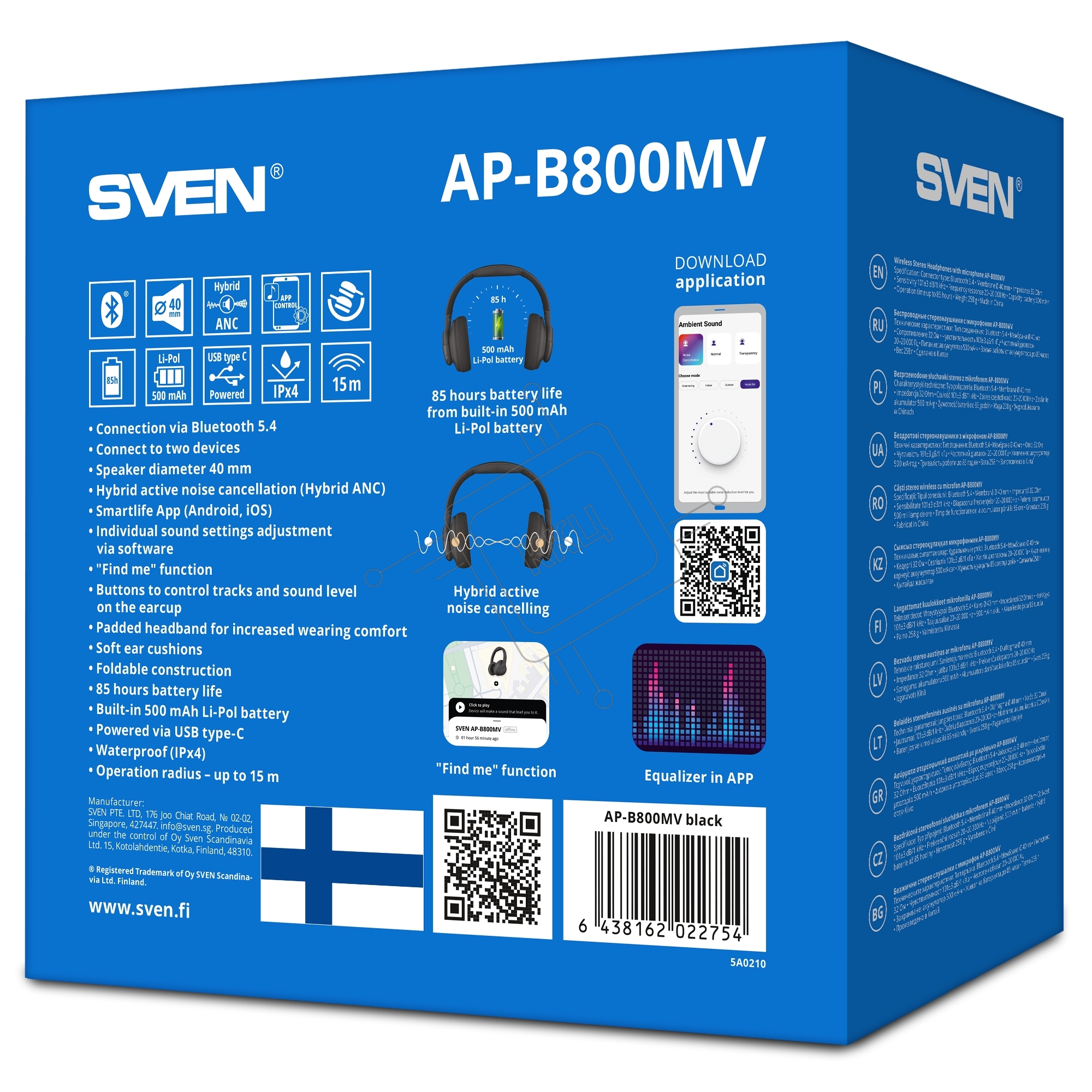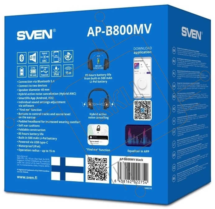 Беспроводные стереонаушники с микрофоном SVEN AP-B800MV, черный