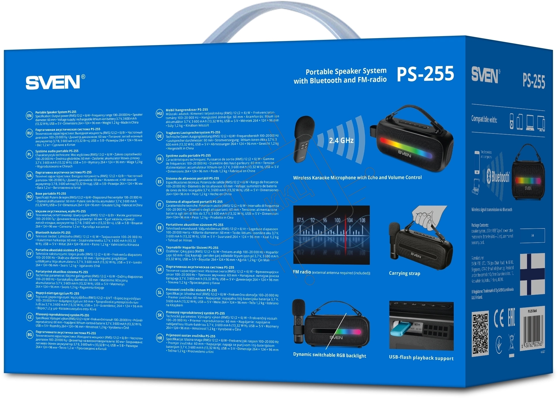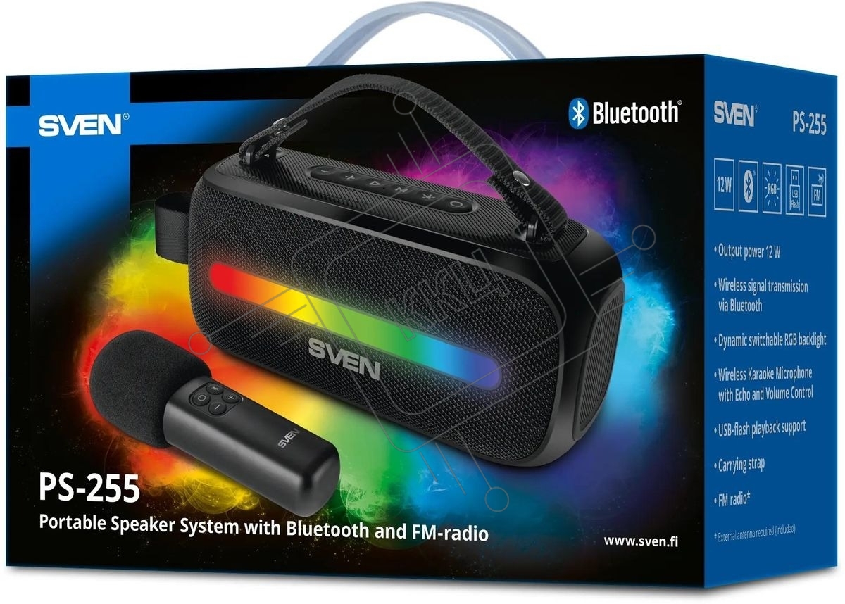 Колонка портативная Sven PS-255 черный 12W 1.0 BT 3600mAh (SV-022563)