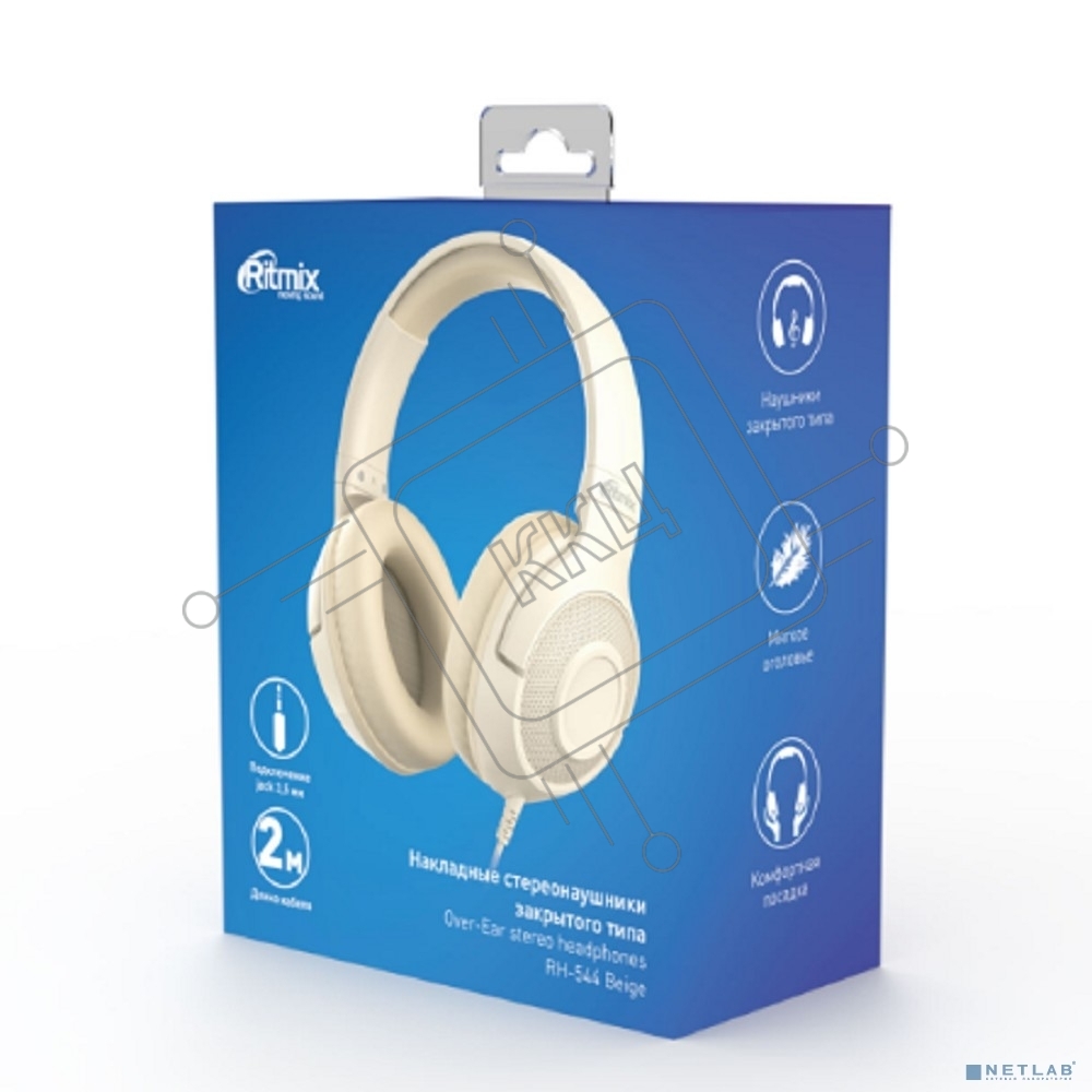Проводные наушники Ritmix RH-544 бежевый, накладные, Jack 3.5 мм, складная конструкция