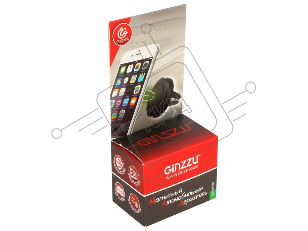 Автомобильный держатель Ginzzu GH-381M в вентиляционную решетку, универсальный, магнитный, черный