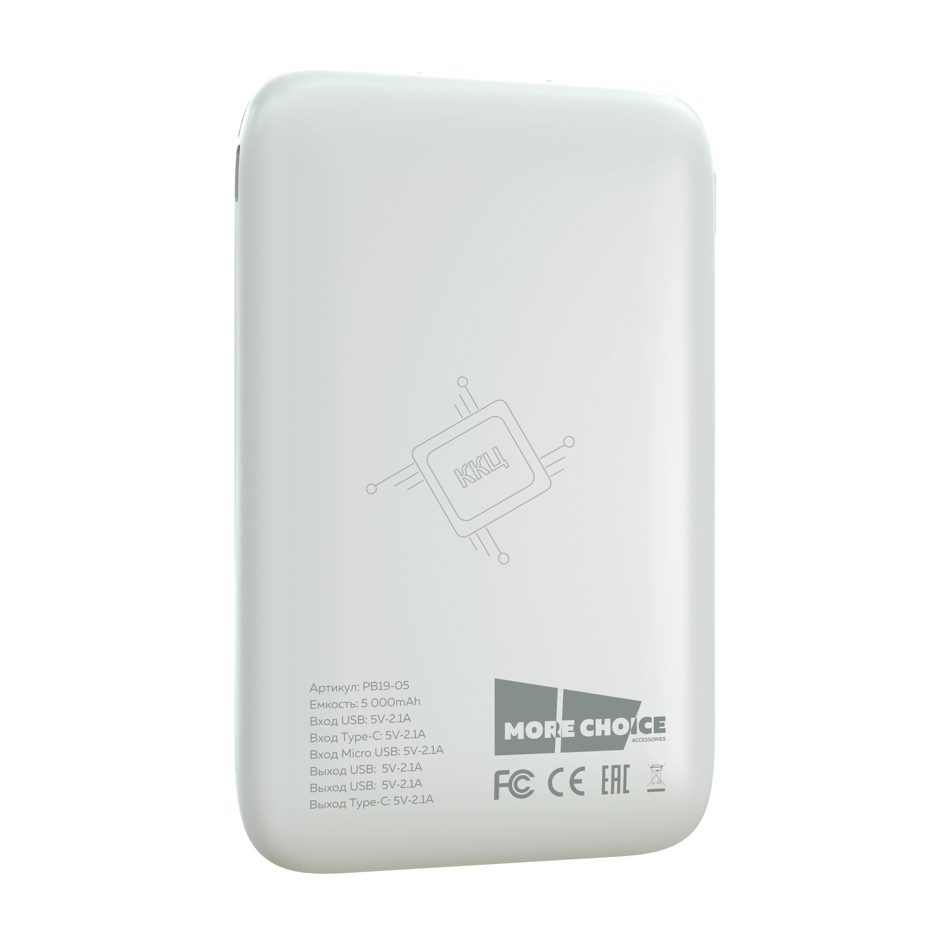 Портативный аккумулятор More choice (4620202550507) PB19-05 2USB 2.1A - 5000mAh белый