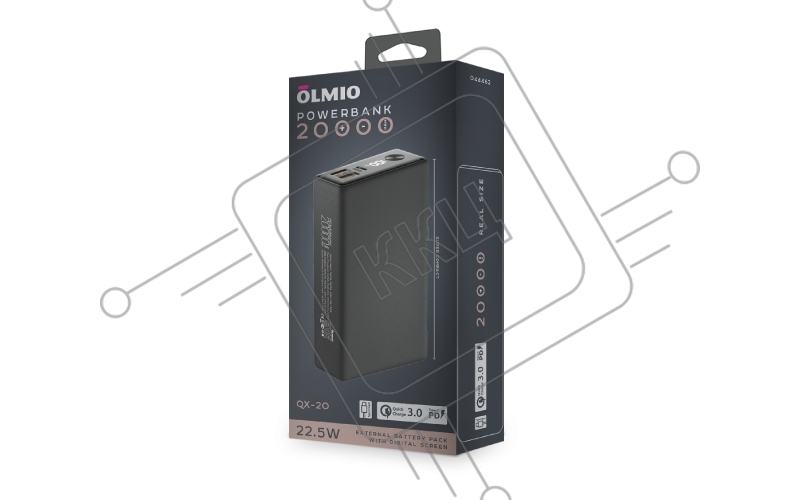 Внешний аккумулятор OLMIO QX-20, 20000mAh, 22.5W, QuickCharge3.0/PowerDelivery, LCD, графитовый