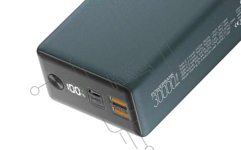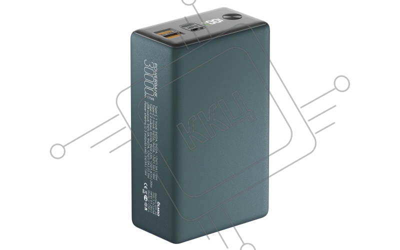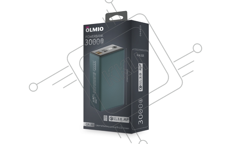Внешний аккумулятор OLMIO QX-30, 30000mAh, 22.5W, QuickCharge3.0/PowerDelivery, LCD, темно-зеленый
