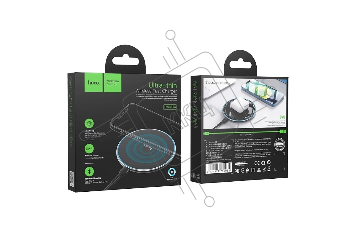 Беспроводная зарядка HOCO CW6 Pro Easy, 2A, черный