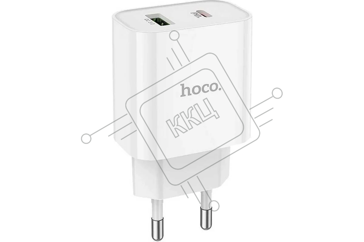 Блок питания (сетевой адаптер) HOCO C80A Plus с кабелем Type-C-Lightning, QC3.0, 20W, белый