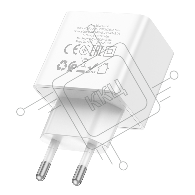 Сетевое зарядное устройство BOROFONE (6941991104749) BAS12A 1USB 3.0A QC3.0 18W White