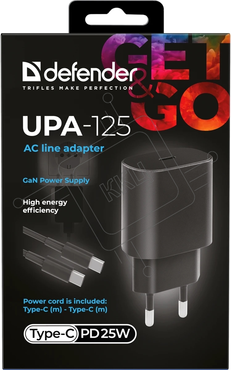 Сетевое зарядное устройство Defender UPA-125 25W,USB C,кабель Type-C,черный