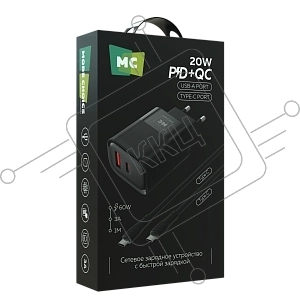 Зарядное устройство MORE CHOICE (4620202555571) NC81a СЗУ 1USB+1Type-C 3.0A PD 20W+ QC3.0, черный