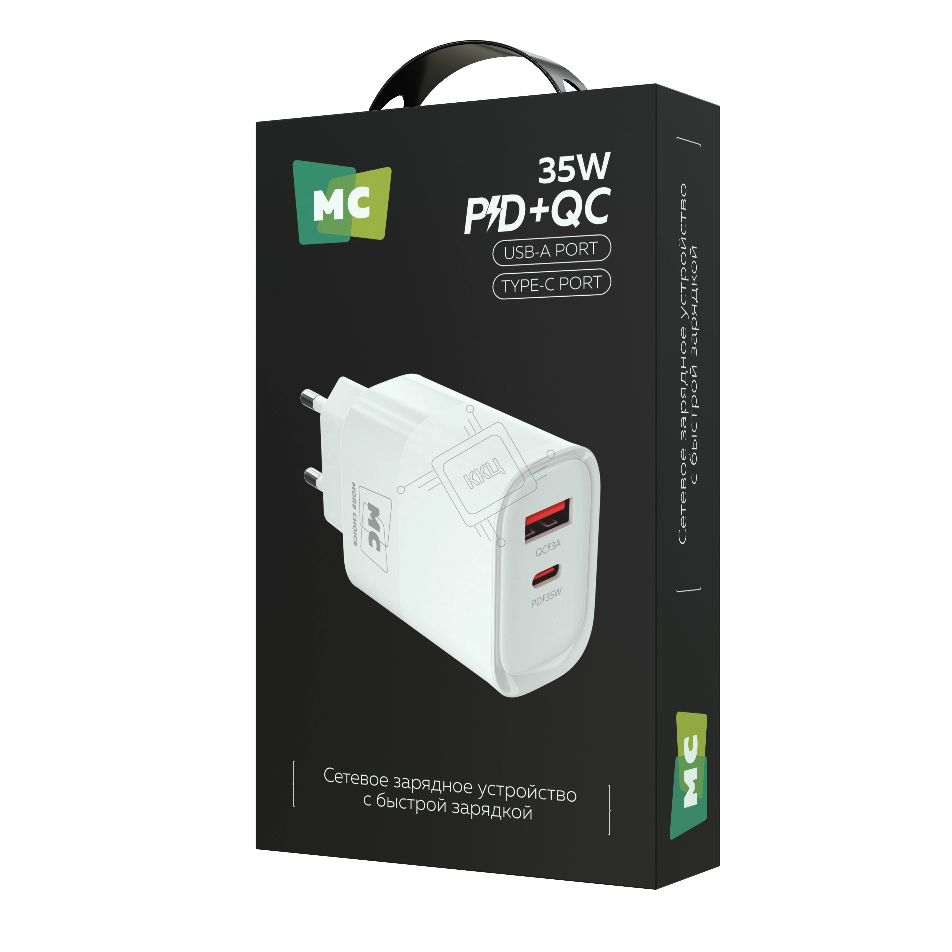 Зарядное устройство MORE CHOICE (4620202555595) NC82 1USB+1Type-C 3.0A PD 35W+QC3.0, белый