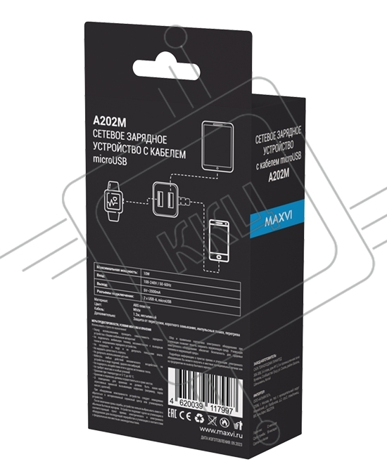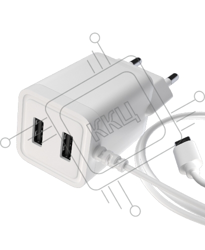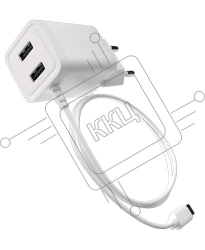 Сетевое зарядное устройство Maxvi A202M 2хUSB 2А 10W + литой кабель MicroUSB 1.2м, белый