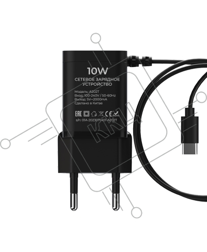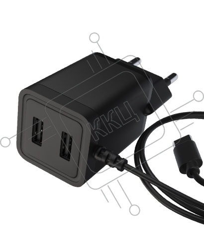 Сетевое зарядное устройство Maxvi A202T 2хUSB 2А 10W + литой кабель Type-C 1.2м, черный