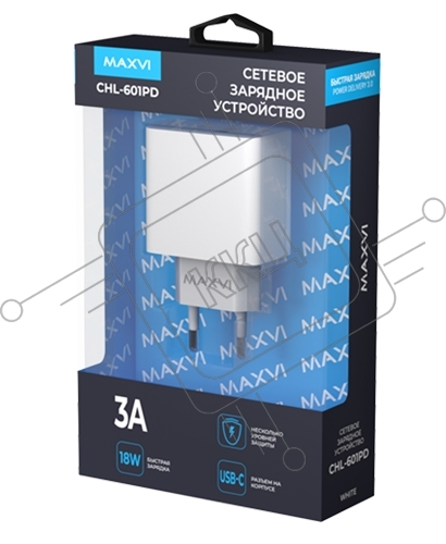 Сетевое зарядное устройство Maxvi CHL-601PD 18W, 3A, QC 3.0, PD 3.0, 1xUSB-C, белый