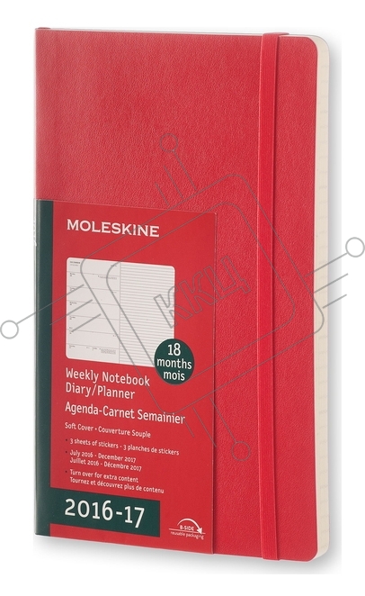 Еженедельник Moleskine ACADEMIC WKNT LGS 130х210 мм, датированный на 18 месяцев, 208 страниц, мягкая обложка красный