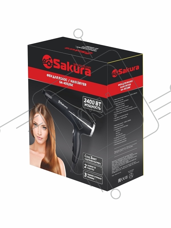 Фен SAKURA SA-4052BK черный, 2400 Вт