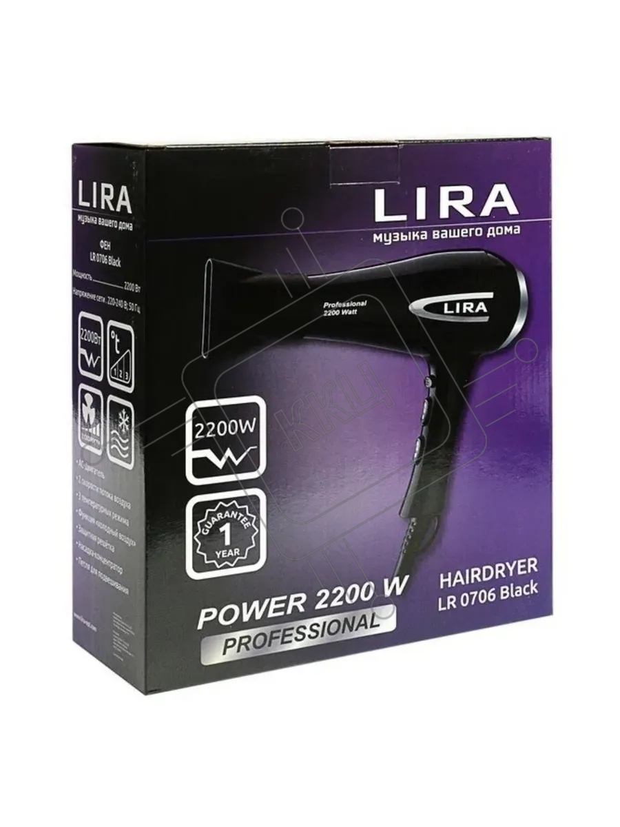 Фен LIRA LR 0706 черный, 2200 Вт