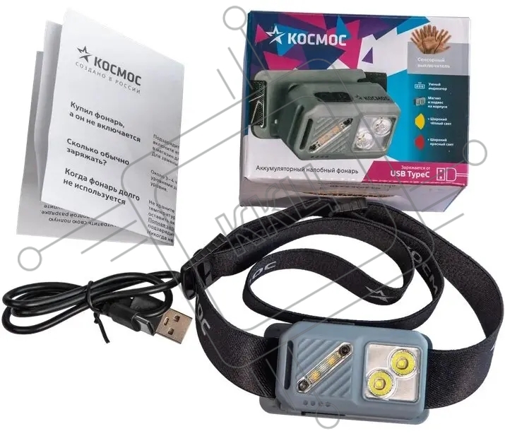 Фонарь налобный аккумуляторный КОСМОС KOC850Lit светло-серый