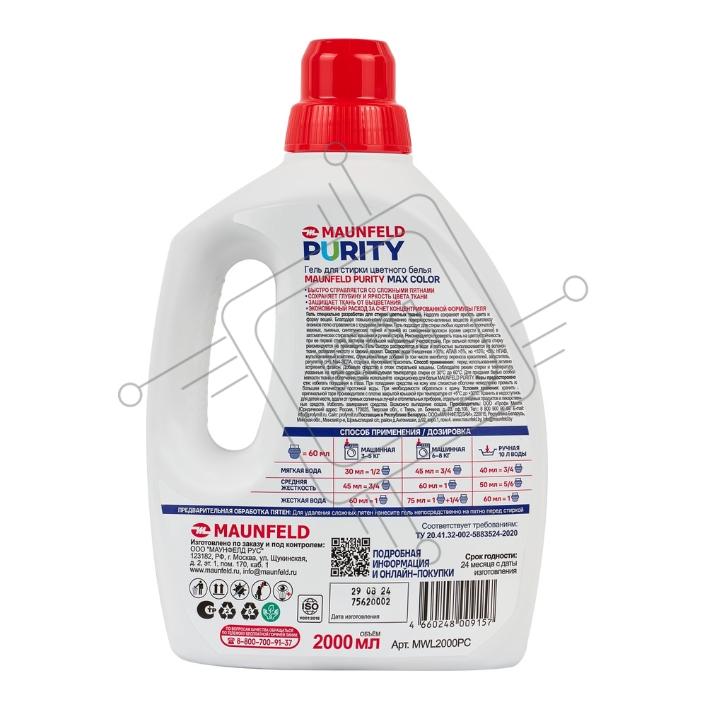Гель для стирки Maunfeld Purity Max color 2000мл MWL2000PC