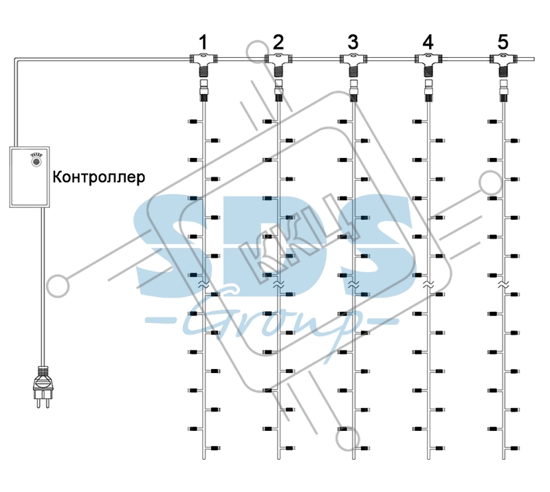 Гирлянда "Светодиодный Дождь" 2х9м, эффект водопада, прозрачный провод, 24В, диоды БЕЛЫЕ, 480 LED