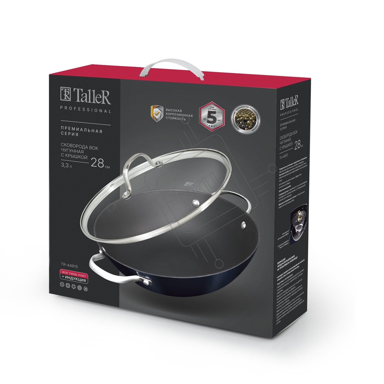 Сковорода Вок чугунная с крышкой TalleR TR-44915 28 см