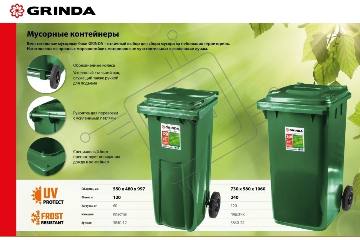 Мусорный контейнер с колёсами, 120 л GRINDA МК-120
