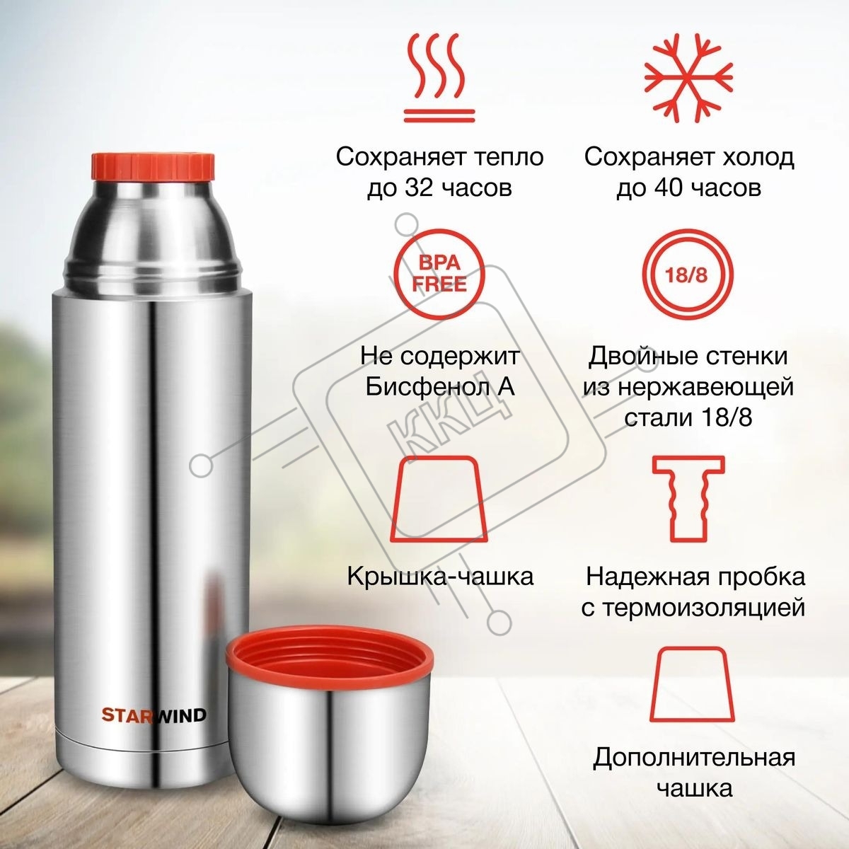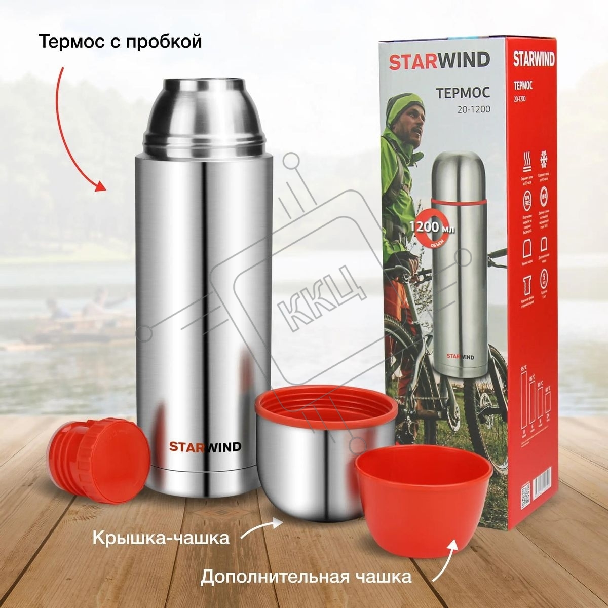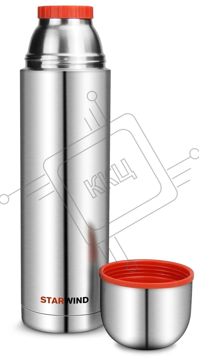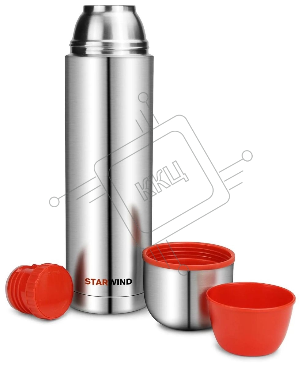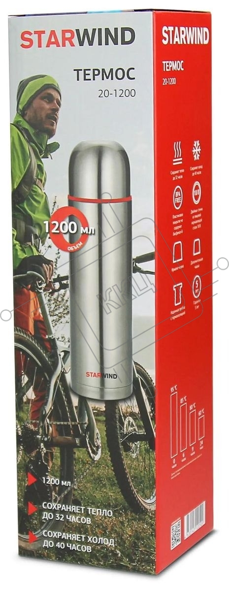 Термос Starwind 20-1200 1.2 л, серебристый/красный, картонная коробка