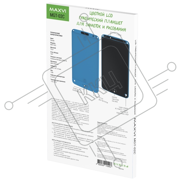 Графический планшет LCD для заметок и рисования Maxvi MGT-02С blue